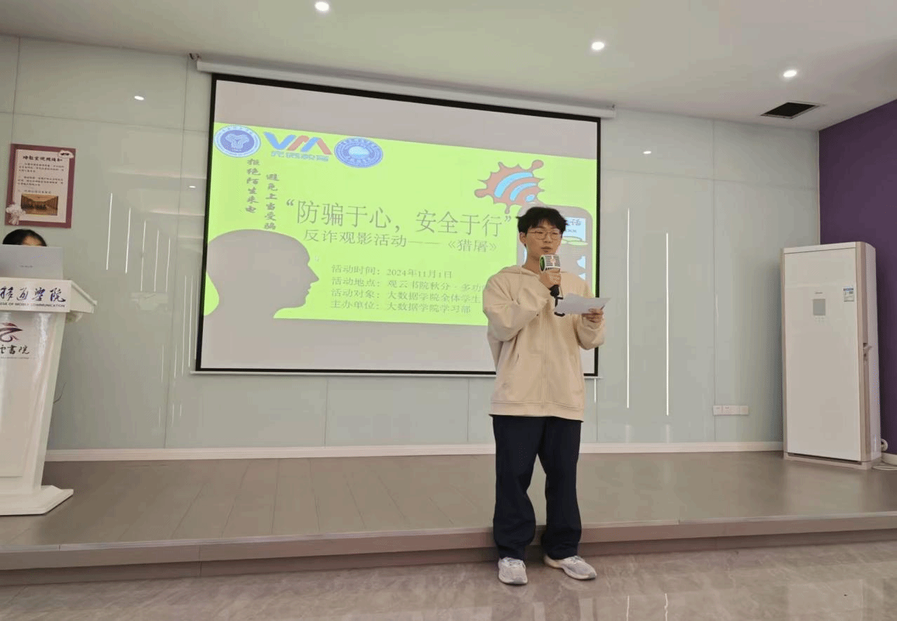 在当今快节奏的时代,网络诈骗无处不在,为提高同学们的防诈骗意识,大数据学院学习部于2024年11月1日14:00-16:00在观云书院秋分·多功能活动室举办了“防骗于心,安全于行”为主题的反诈观影活动。此次观影活动旨在通过生动的电影形式,让大学生们深刻认识到诈骗的危害,进一步提升他们的反诈骗能力,筑牢校园反诈安全屏障。