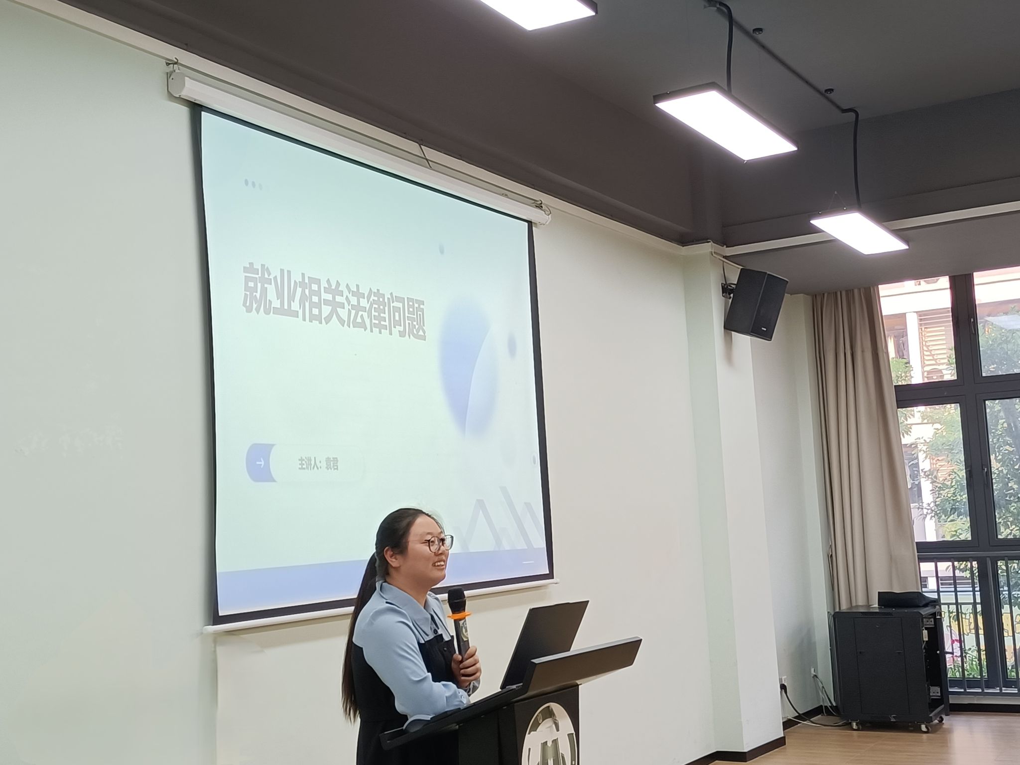 袁君老师通过分享就业纠纷的实际案例,向同学们传达了深刻的警示,并鼓励大家积极学习法律知识,不断提升个人专业技能。她强调,年轻人代表着国家的未来和希望,如同初升的朝阳,充满潜力和活力。她呼吁同学们要明确个人职业发展目标,专注于自我提升,以博学笃志、切问静思的态度,为实现个人价值和社会贡献而不懈努力,不负时代赋予的重任和人民的期望。