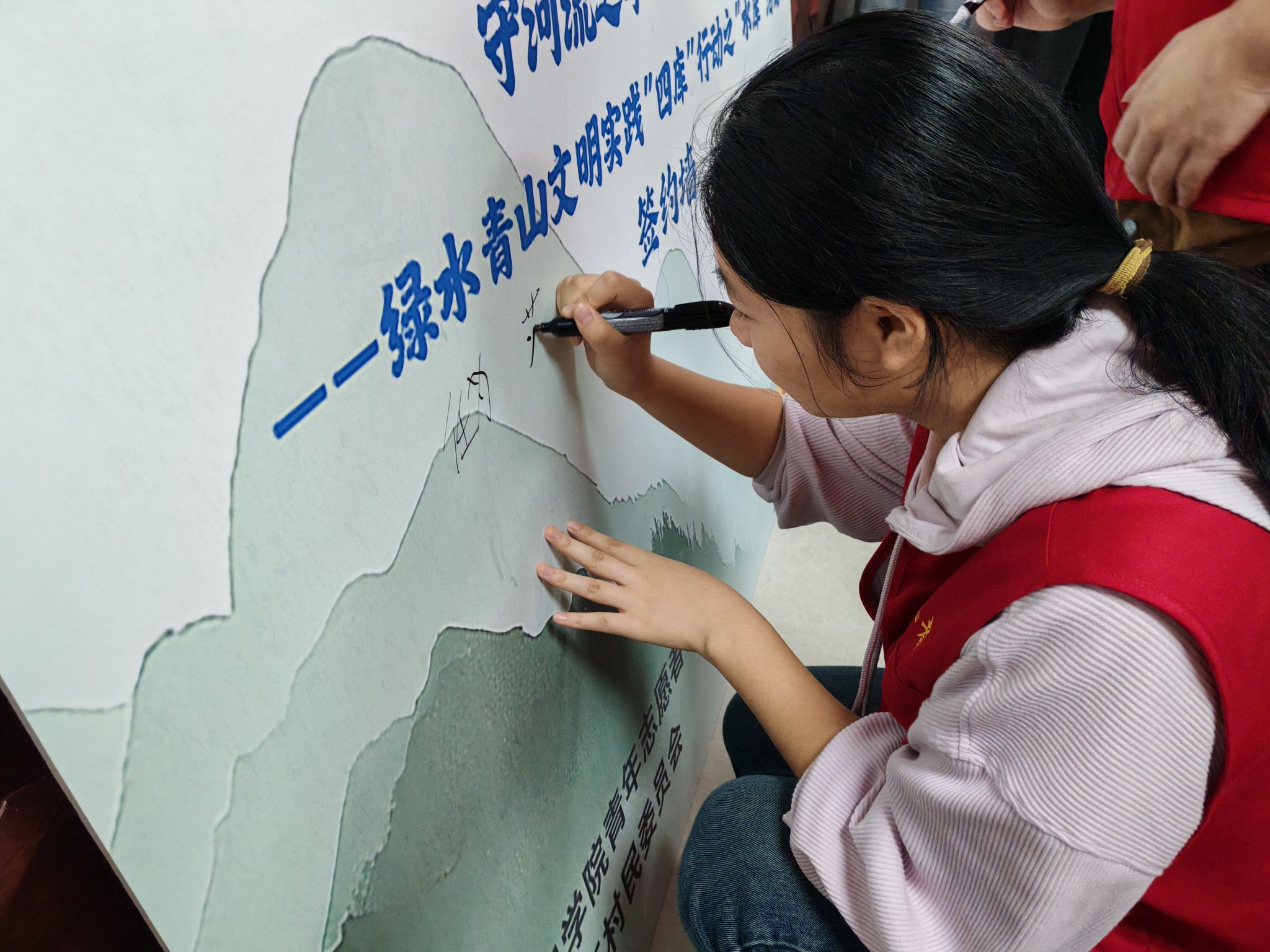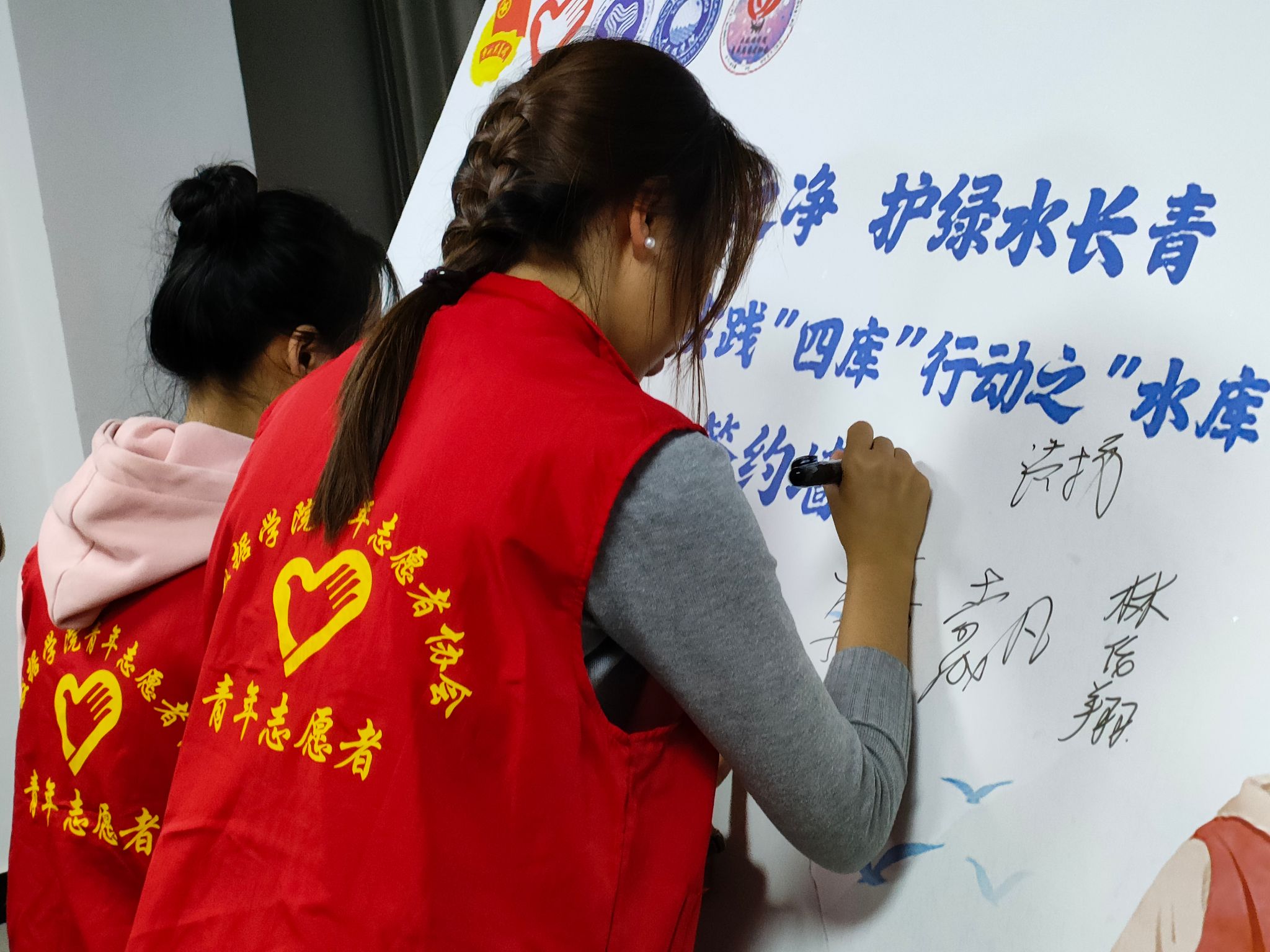 在陈安琪老师和三桥村肖老师的带领下,志愿者们在会议室集结。陈安琪老师深刻解读了“守河流之净,护绿水常青”的活动主旨,强调绿水青山文明实践“四库”行动之“水库”活动对水资源保护及生态环境维护的重大意义。“四库”行动之“水库”活动的签约墙上“人不负青山,青山定不负人”的号召,意义深远。志愿者们深刻领悟人与自然和谐共生的重要性,逐一上前,郑重签名,许下守护绿水青山的坚定承诺。