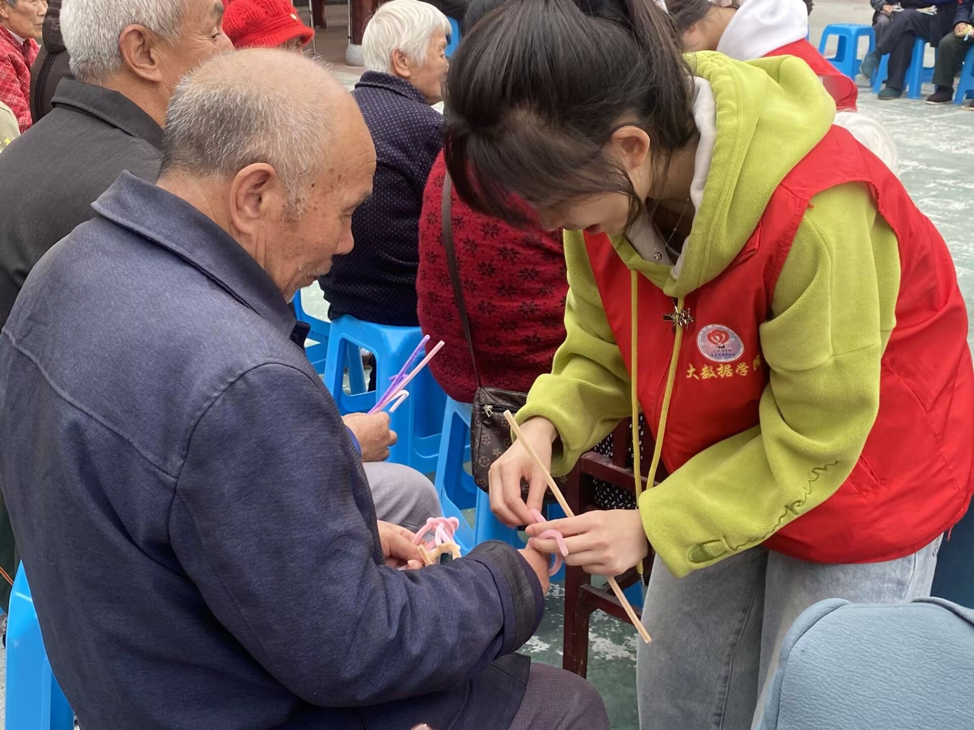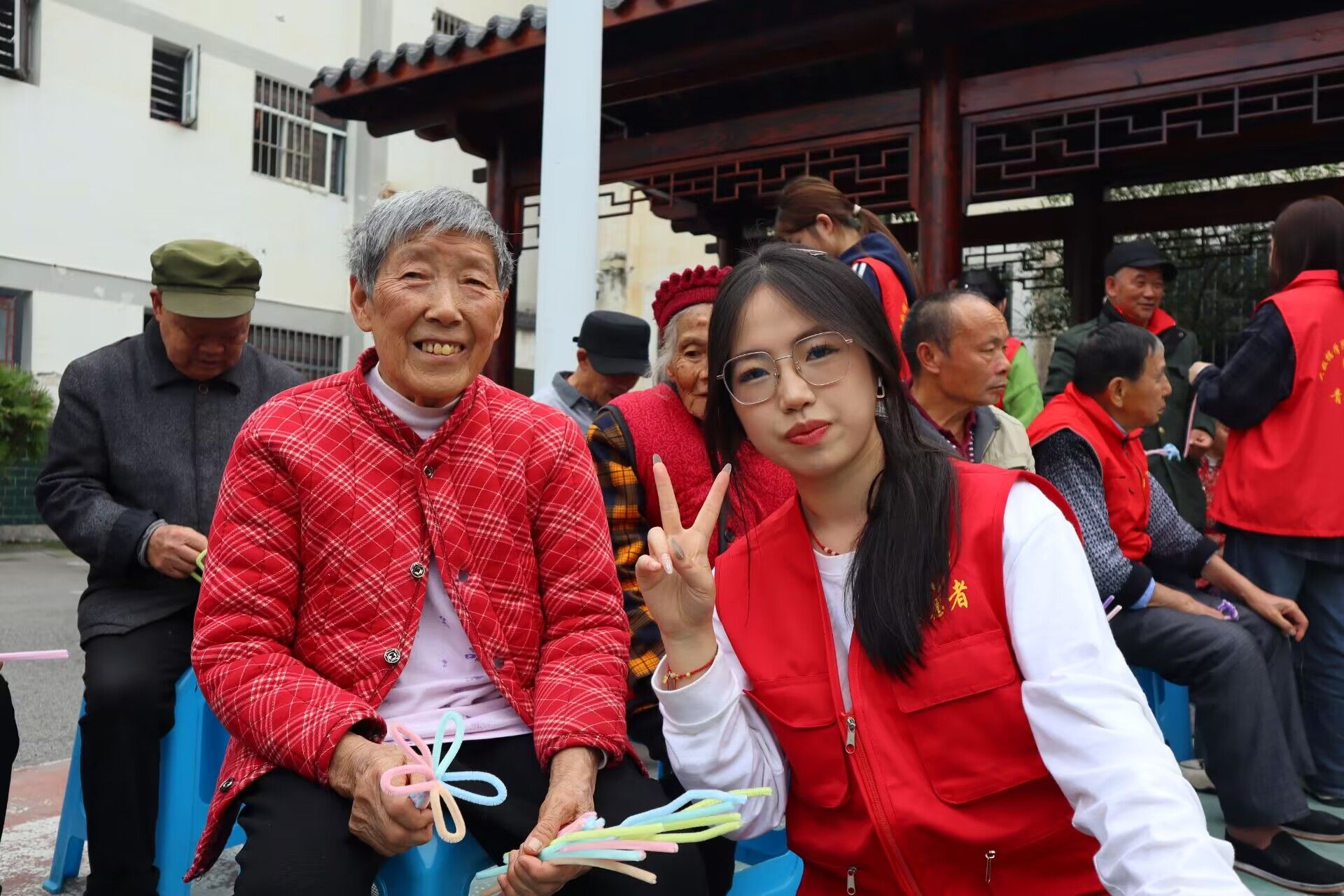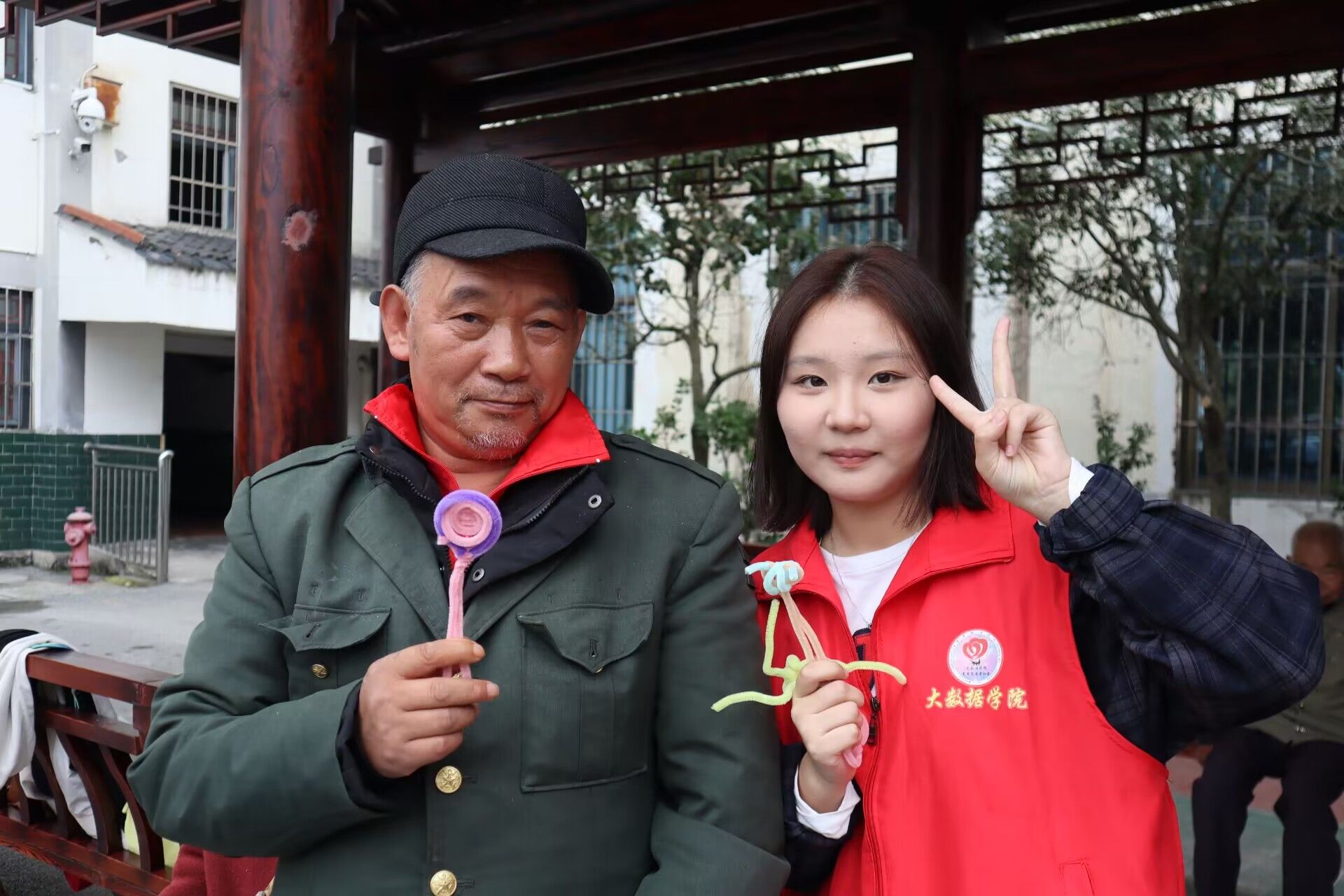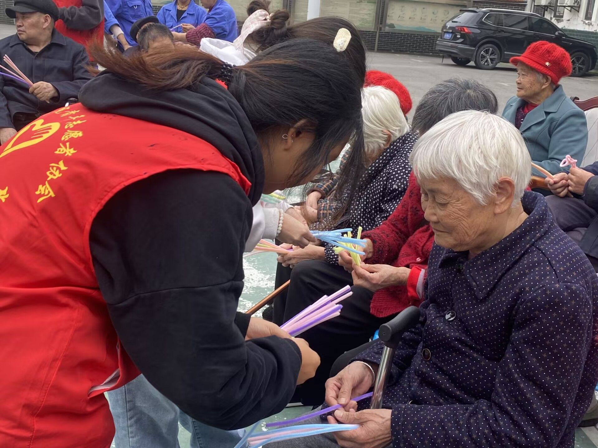 节目落幕后,志愿者们手持扭扭棒与老人们共同感受快乐。志愿者们一步步示范如何用扭扭棒扭出有趣的形状,老人们跟随着志愿者的引导,将扭扭棒扭转、弯曲,每一次尝试都充满新奇与期待。有的老人成功塑造出一只小鸟,兴奋地展示给大家看,还与其他老人分享自己的创作心得;有的则创造出花朵,眼中闪烁着成就感的光芒,引来周围老人的连连称赞。