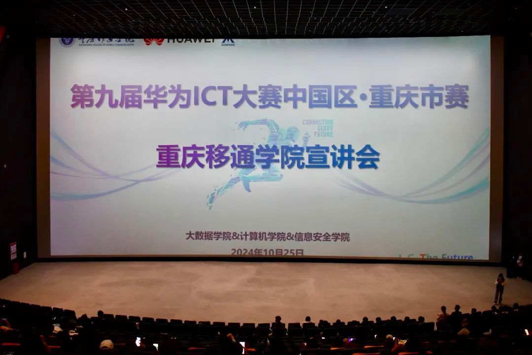 为发掘更多潜力无限的科技新星,激发青年一代的创新活力,大数据学院于10月25日下午14:00组织了第九届华为ICT大赛中国区·重庆市赛校园宣讲会。此次宣讲会在万画影城一号巨幕厅举行,邀请到了深圳市讯方技术股份有限公司重庆校企合作总监扈月秋入校宣讲,大数据学院、计算机学院、信息安全学院600余名学生代表参加了宣讲会。宣讲会由曾珂老师主持。第九届华为ICT大赛致力于打造一个产学研深度融合的开放创新生态,为我国科技人才的培养注入新的活力。随着宣讲会的圆满落幕,第九届华为ICT大赛正式拉开帷幕。