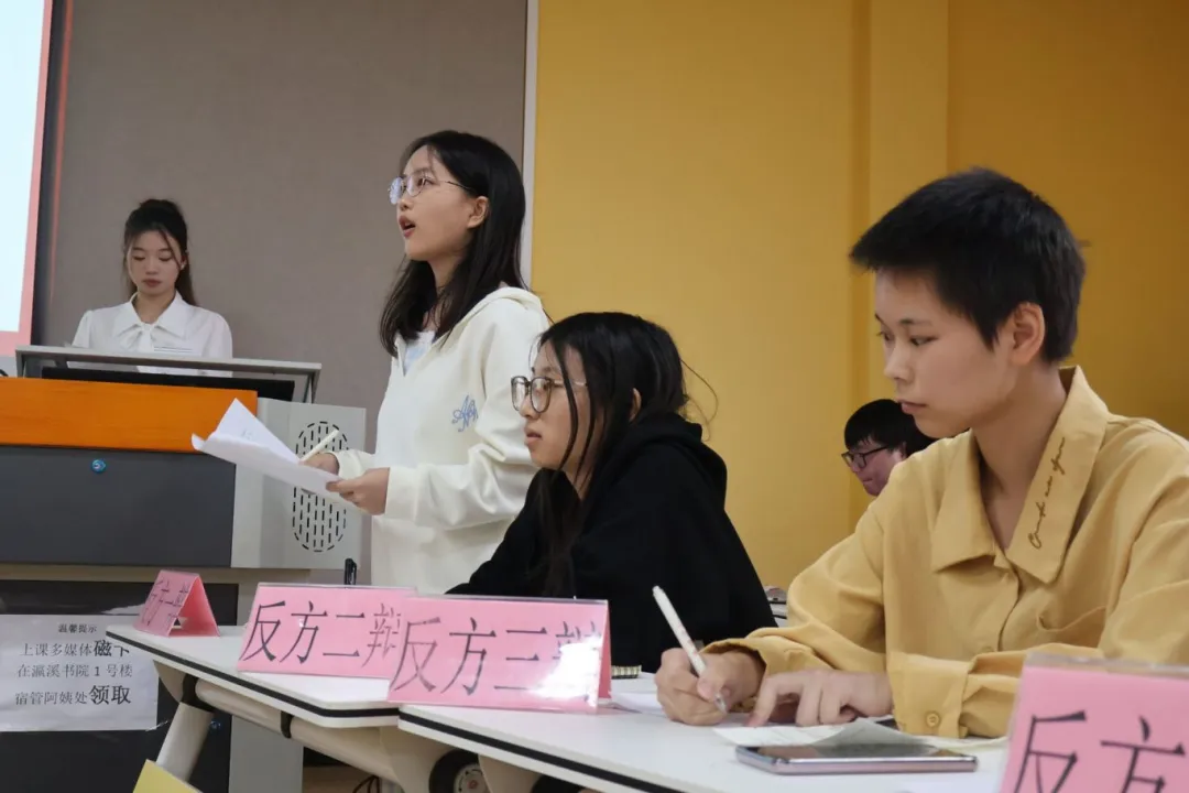 金秋十月,丹桂飘香。为培养同学们的逻辑思维能力、语言组织能力、团队协作能力以及拓宽大学生的自我认知。2024年10月18日14:00由大数据学院学习部举办的“‘綦’思青春,‘通’辩未来”第十四届“新生杯”辩论赛初赛在灜溪书院回声报告厅、语者演讲培训室同时举行。“辩论是思想的交锋,智慧的碰撞。”辩手们在赛场上的精彩表现,让我们看到了青年学子的蓬勃朝气和对知识的渴望。一言一语展语言之精妙绝伦,一驳一证彰显逻辑之严谨缜密。经过激烈的角逐,辩论赛在评委杨粤、王伟的精彩点评中落下帷幕。最终“我们说的都队”“醉把佳人成双队”“小白团队”“对对队”四支队伍凭借出色的表现获得了本次辩论赛初赛的晋级。