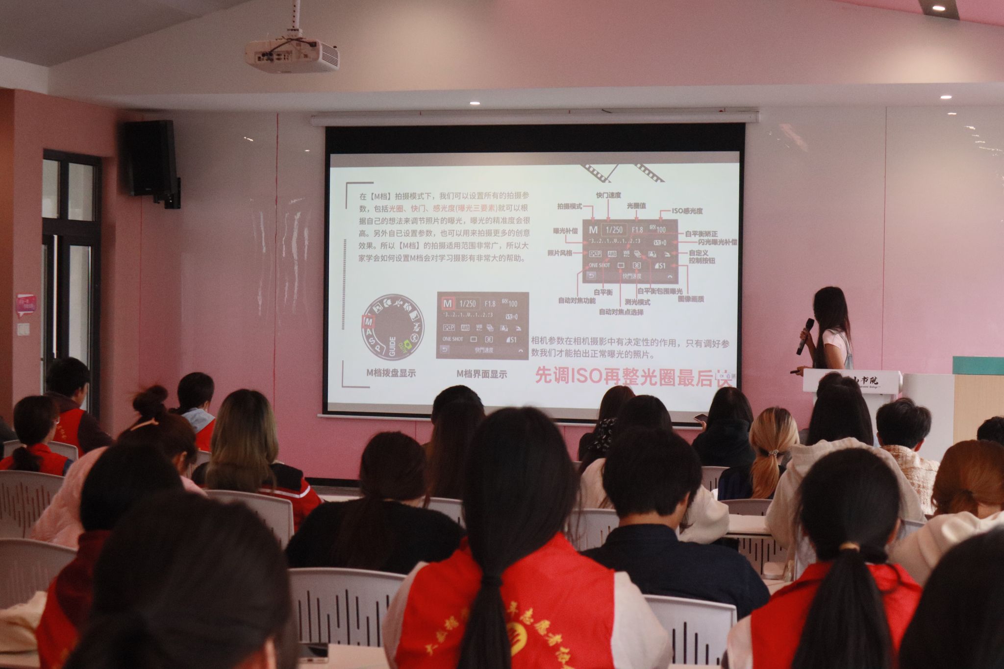 随后,刘霜学姐详细讲解了新闻稿撰写的基本要求及技巧和相机的使用。她从标题的拟定、内容的组织、语言的运用等方面进行了深入剖析,并结合实际案例进行了生动的讲解。她指出,标题要简洁明了、富有吸引力能够准确概括文章的主要内容;内容要条理清晰、重点突出能够充分展示活动的亮点和特色;语言要准确、生动、形象能够让读者产生共鸣。刘霜学姐还从相机的基本操作入手详细地介绍了如何调整光圈、快门速度、焦距等参数,以及如何在不同的场景下拍摄出高质量的照片。她通过实际案例的展示,让学生们更加直观地感受到了相机操作的技巧和魅力。学生干部们认真聆听不时记录下重要的知识点。在刘霜学姐耐心解答下,进一步加深了大家对知识的理解。通过这次培训学生干部们不仅在专业技能上得到了提升,更在自我文字修养上有了新的突破。