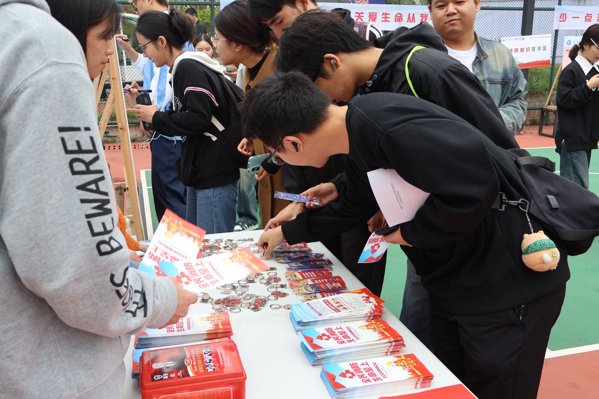 在活动现场还设置了消防知识宣传区,设置了消防宣传横幅、手抄报、海报等宣传品,涵盖了校园消防安全、消防器材使用、消防安全知识等内容。运动会比赛开始前,现场观众和选手纷纷前往宣传区,自主学习,真正上一堂防火、灭火、自救的消防教育实践课。在消防打卡点,大家热衷领取消防文创的钥匙扣、书签以及宣传手册,在签名板上签到留下消防运动会的“足迹”。同时,现场也设置了灭火区、竞速区,观众和选手们可以在观赛区进行观摩,为参赛队伍加油鼓劲。