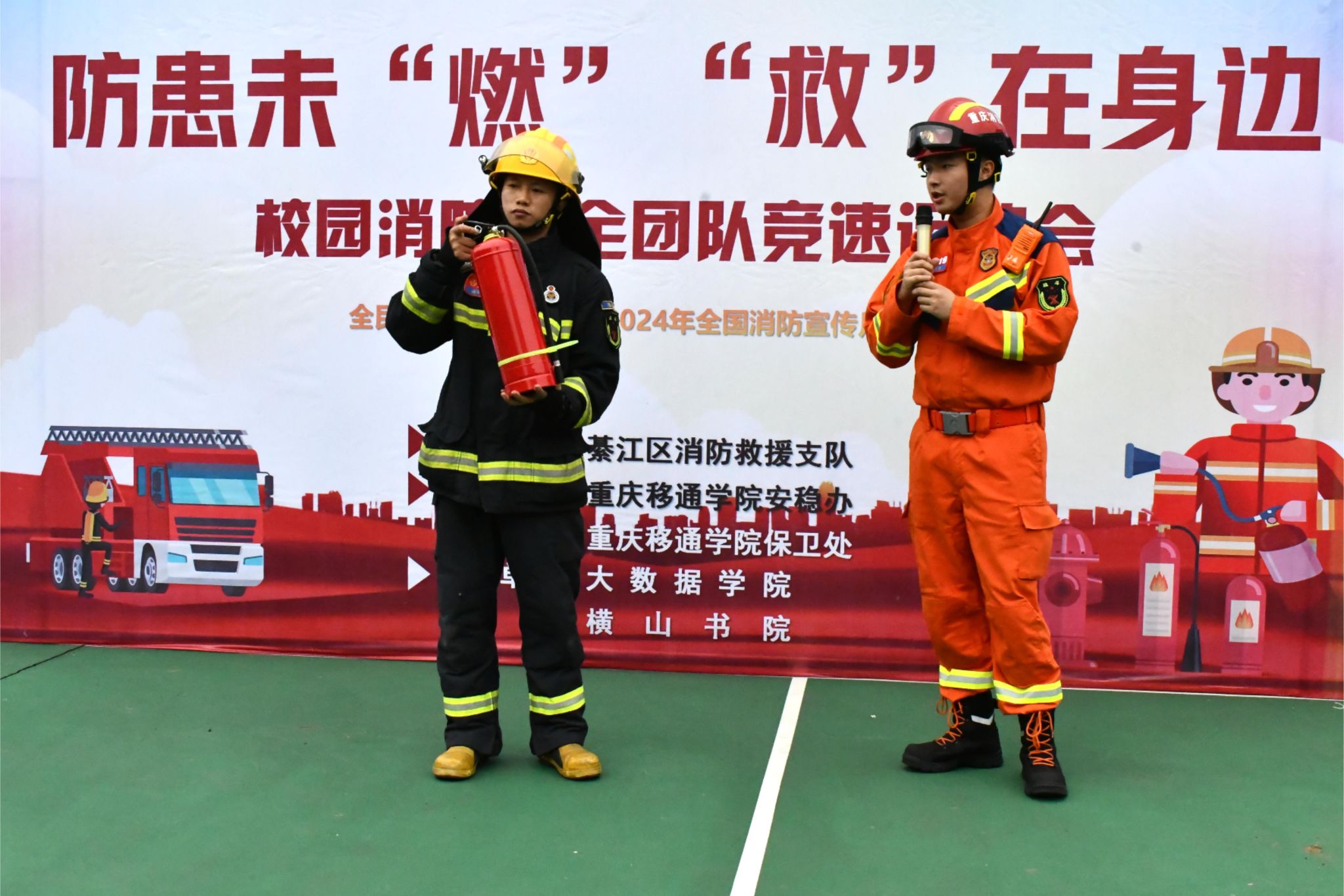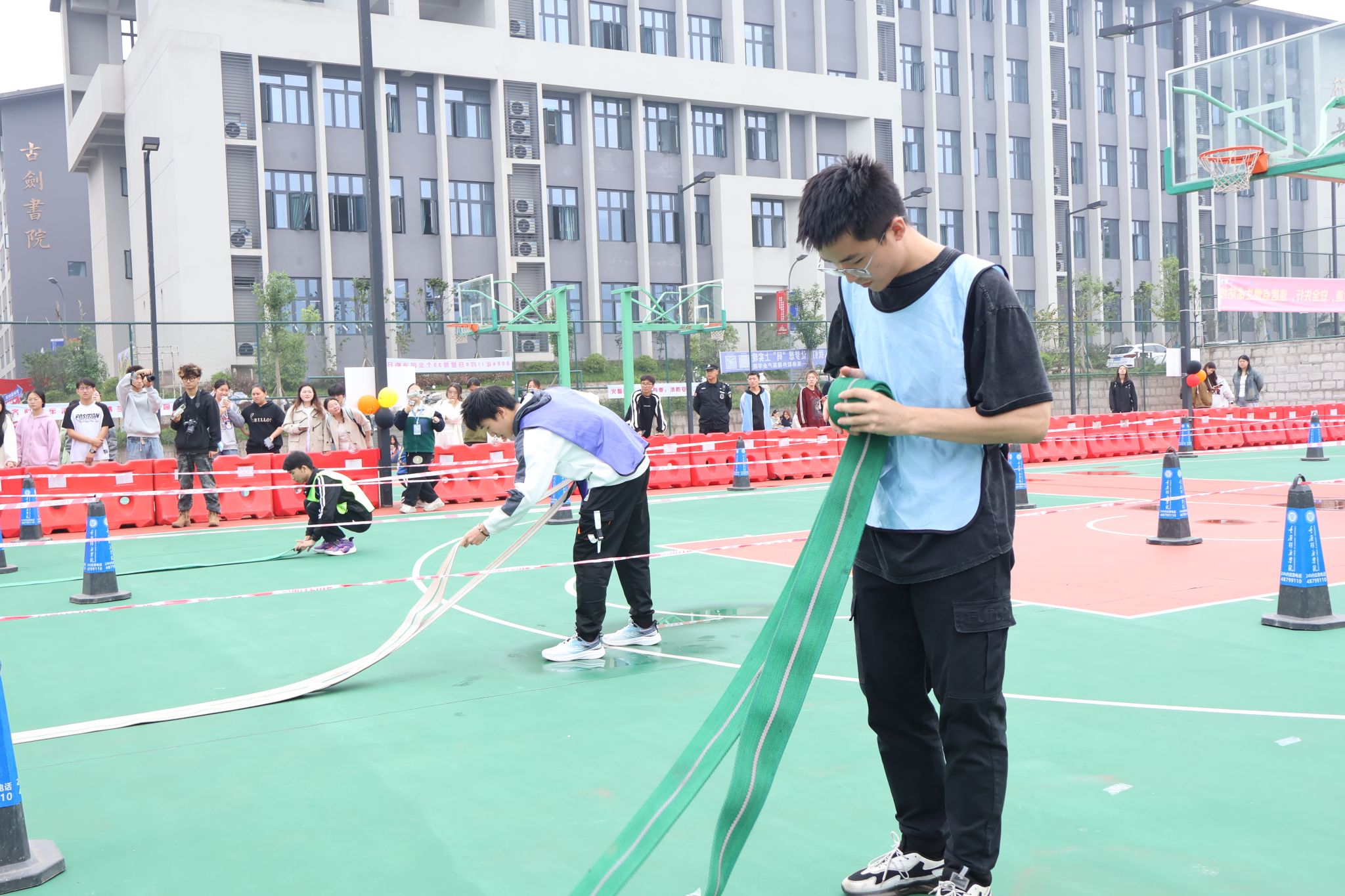 2024年11月9日是第33个全国消防宣传日。为进一步营造安全、稳定、和谐、有序的校园消防环境,增强师生消防安全意识,提高校园应急救援的能力,2024年11月14日中午12点30分,“防患未‘燃’‘救’在身边--校园消防安全团体竞速运动会”在行者楼前篮球场如期举行。此次消防安全竞速运动会由重庆移通学院綦江校区安稳办主办,重庆移通学院綦江校区保卫处、大数据学院、横山书院联合承办,活动还得到了綦江区消防救援支队的精心指导。运动会现场人潮攒动,氛围火热非凡,累计吸引了15支队伍,200余名选手和观众到场观赛或观摩。
