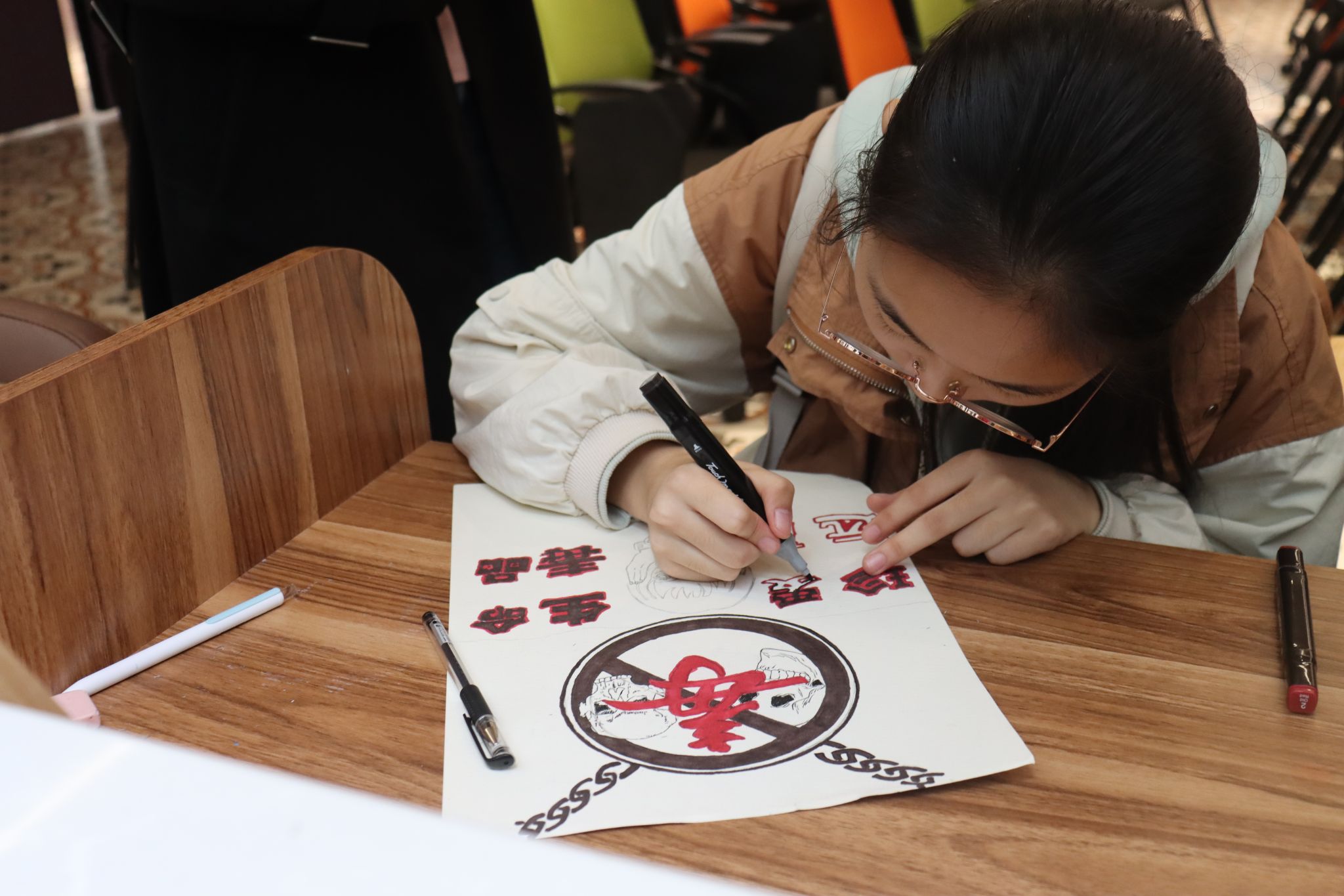 活动现场,同学们满怀热情与使命感,纷纷来到观云书院华文书吧,准备在画布上挥洒创意。虽然他们来自不同的专业,但面对禁毒这一共同主题,每个人都怀揣着坚定的信念进行创作。活动正式开始,同学们迅速投入到创作中,画笔在他们的手中舞动,色彩在画布上跳跃,每一笔都蕴含着对禁毒事业的坚定支持。