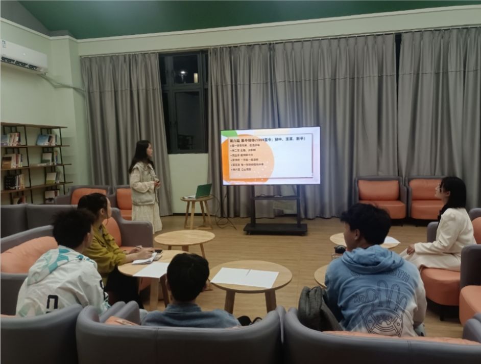 以铜为镜,可以正衣冠;以史为镜,可以知兴替;以人为镜,可以明得失。阅读是一种良好的习惯,阅读也是让人进步的一种方式,不要失去信心,只要坚持不懈,就一定会有结果。4月5日晚19:00,全生异科导师林红带领2022级计算机科学与技术2-3班的第一组成员于横山书院悦君泽•朋辈交流室开展了大咖阅读分享会,大家共同分享了《褚时健传》一书,这本书全面的叙述了褚时健跌宕起伏的一生,从烟草,到“褚橙”,品味“烟王”“橙王”跌宕人生给与我们的力量。