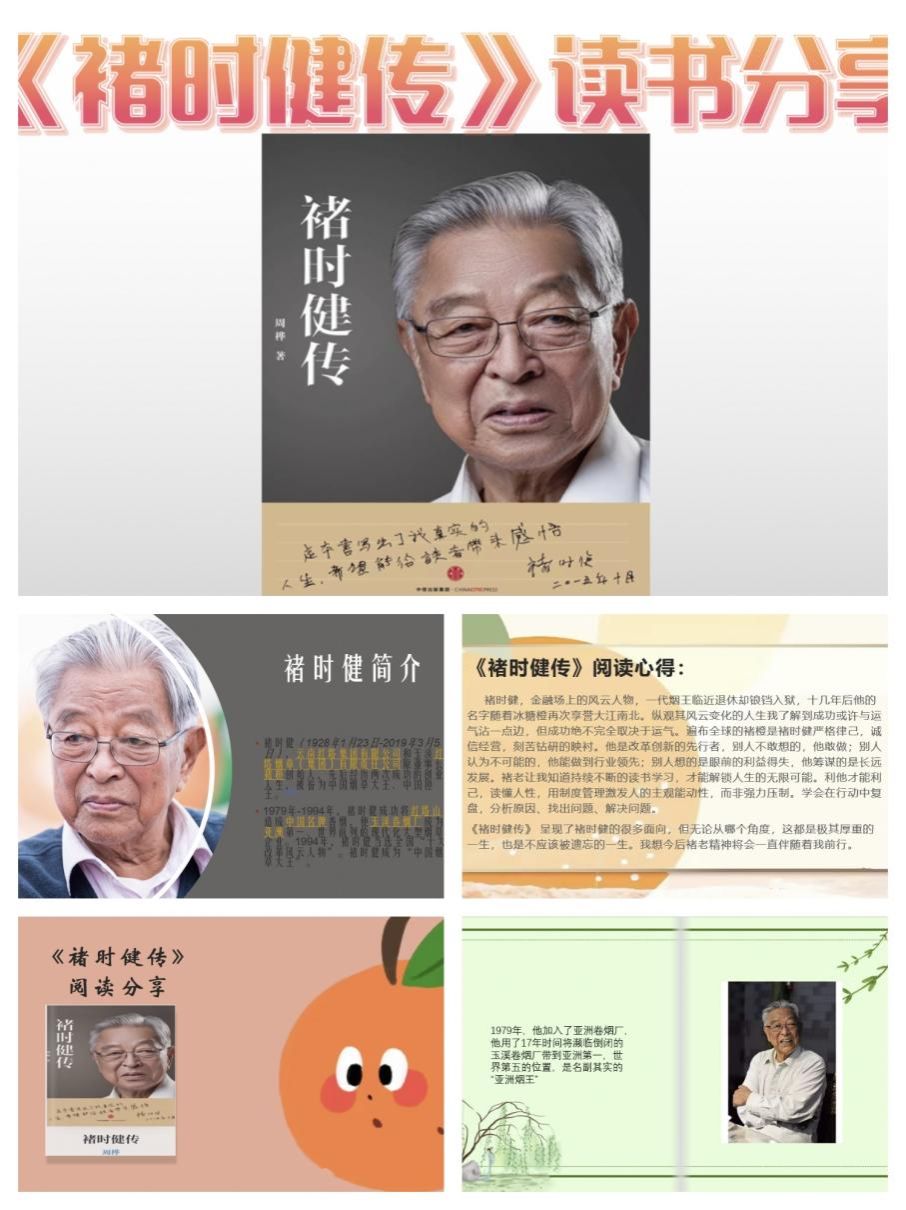 七位同学分别对《褚时健传》的七个章节进行阅读,并在本次大咖阅读分享会上分别以PPT进行讲述传记内容,以及各自对每个章节的独特见解。他们畅所欲言,有声有色,将诸多深刻道理尽情展现给在座的各位老师同学。