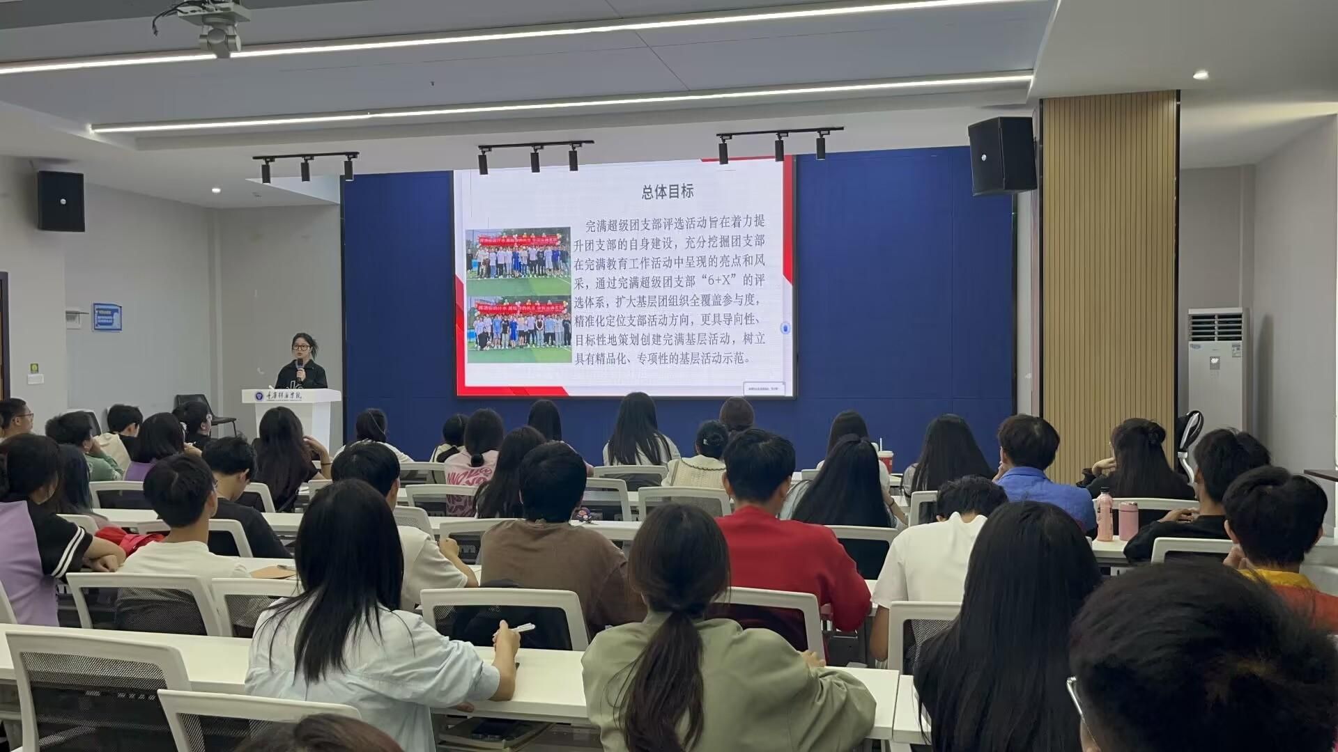 本次会议从“总体目标、总体安排、相关措施、具体要求、示范团支部代表分享和交流讨论”六个阶段,对完满超级团支部展开讲解。