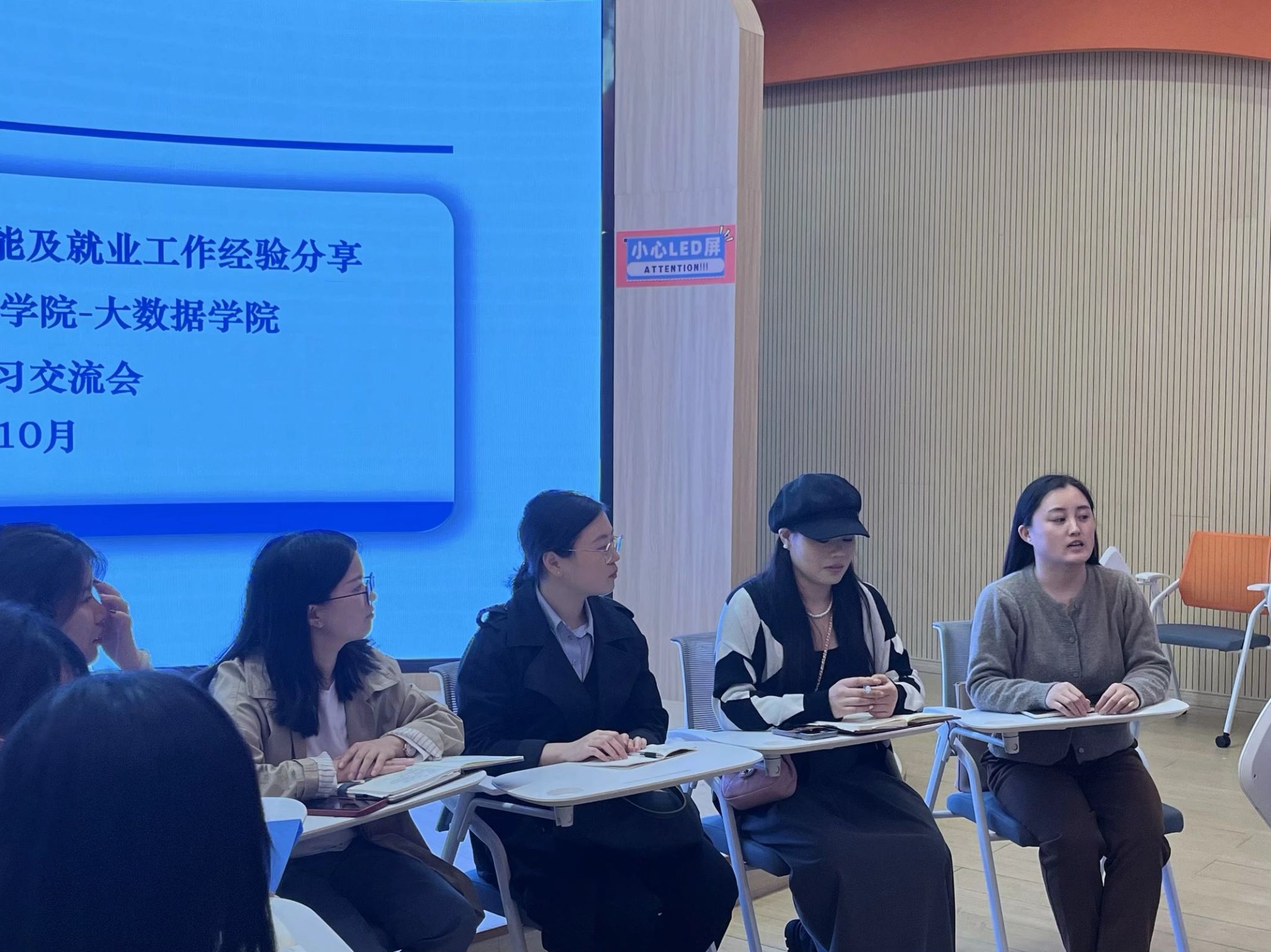 “在刚刚结束的学院毕业生就业创业工作动员大会上,相信大家对学院的概况有所了解,我们本就是一个大家庭,所以请大家在接下来的交流中畅所欲言。”大数据学院学工副院长阙小梅老师对两个学院的发展历程做了简要介绍,并对大数据与计算机科学学院的辅导员老师们的到来表示热烈欢迎,表达了对两个学院共同融合、交流、互动、协作的美好期许。