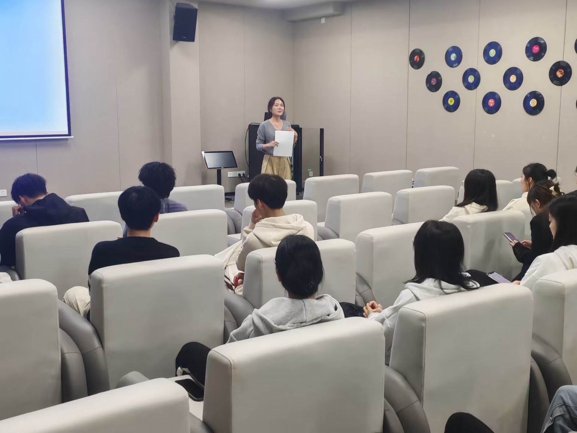 秋日的校园多了几分舒爽,也多了份期盼已久的相会。为了更好地营造师生紧密联系的学习生活共同体,更快的帮助学生明确个人发展规划,异科导师刘润逸于10月25号晚与2023级数字媒体技术4班和5班的同学在瀛溪书院“潜台词影音室”开展了以“完满綦遇,大放异彩”为主题的首次异科师生见面会。