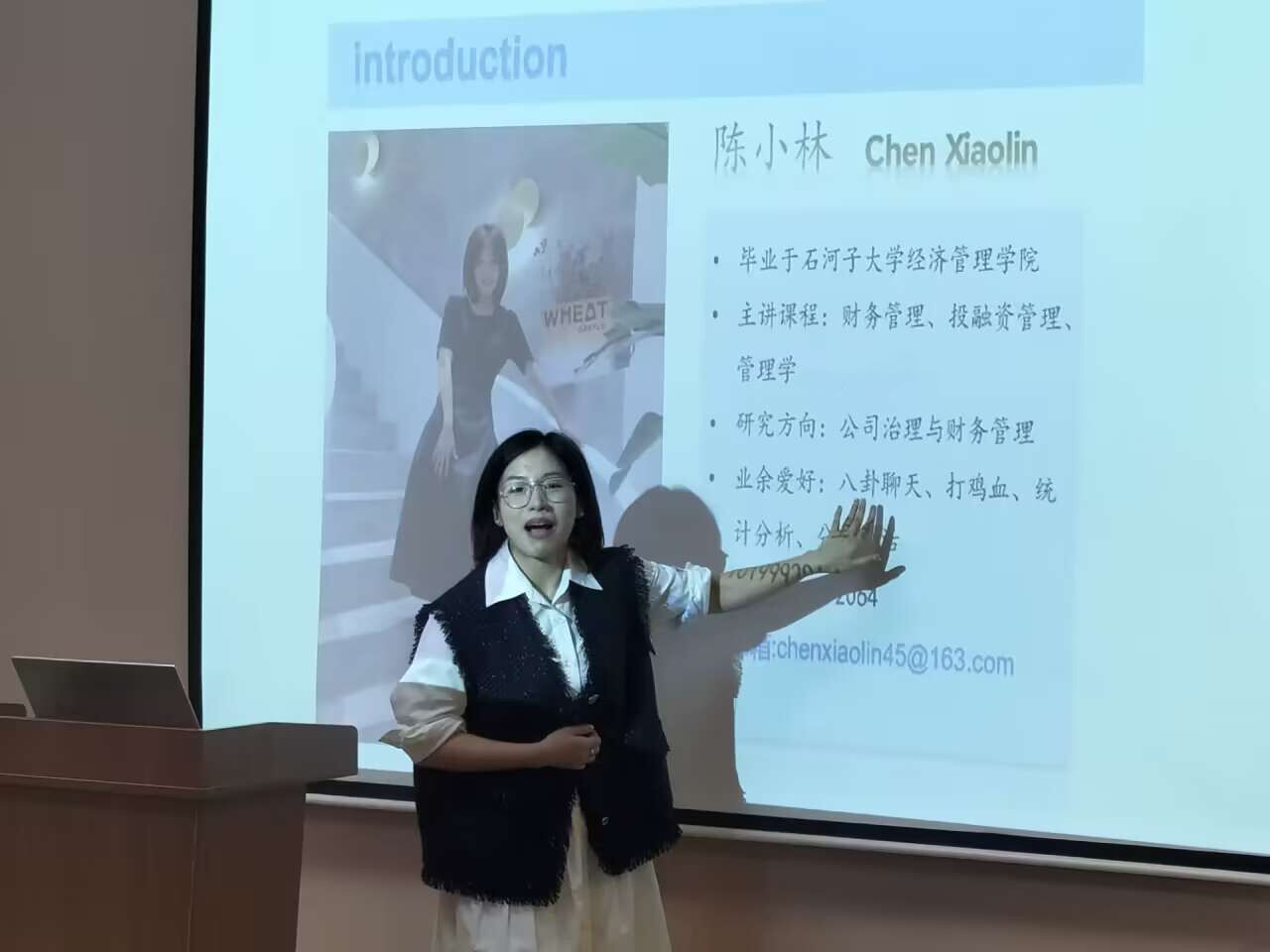 首先,活动由导科导师陈老师介绍其公司治理与财务管理专业背景开场,强调了公司治理与财务管理在当今商业世界中的重要性。他还表达了对学生未来发展的期望,强调了导师将在学生成长的各个阶段提供帮助和指导。