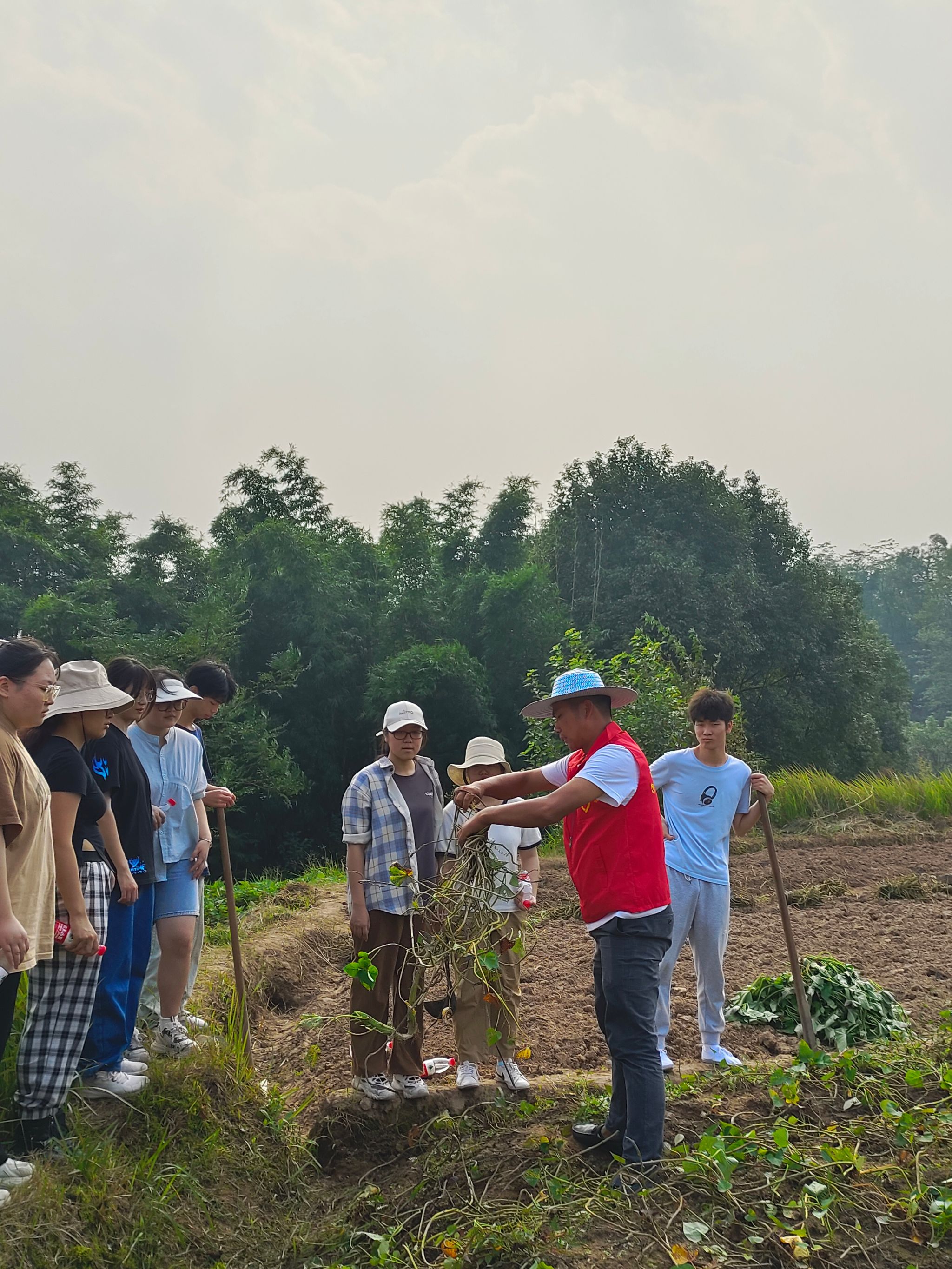 接着师生分两队志愿师生开始劳动实践,帮助特困家庭收割红薯。开始前,张后生副主任为志愿者提供师范,志愿者认真学习后,仔细按照示范动作开始劳动体验。