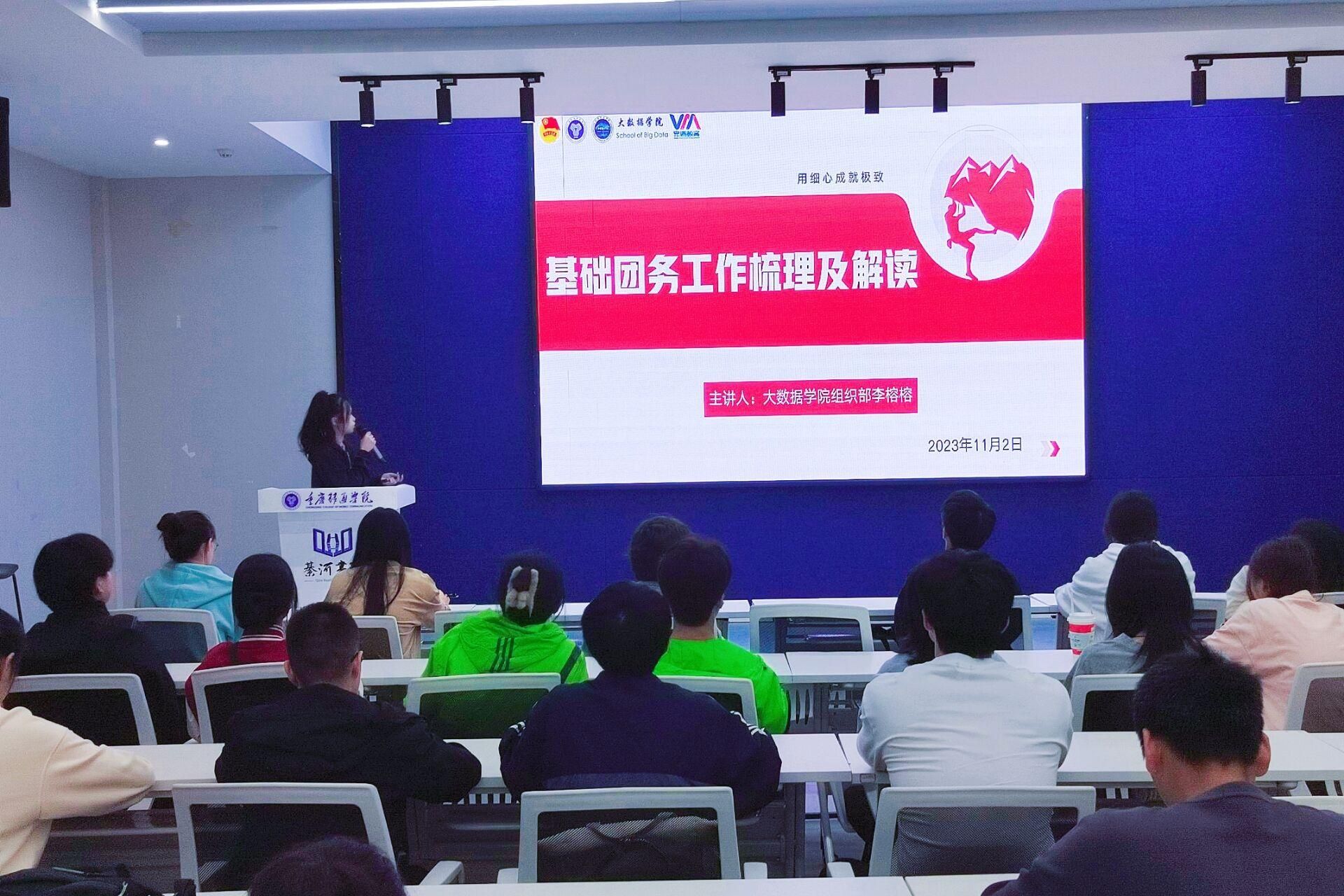 青年充满活力,青春当以奋斗为底色,身在其位必尽其职。为加强我院各基层团组织的管理,落实基础团务工作,提升团支部建设,增强团支部凝聚力,重庆移通学院(綦江校区)大数据学院于2023年11月2日中午12:10,在綦河书院2号楼观涛•多功能报告厅开展了以“基础团务”工作解读为主题的培训会议。