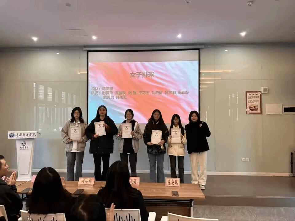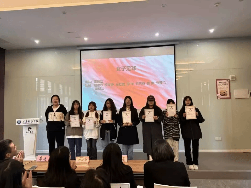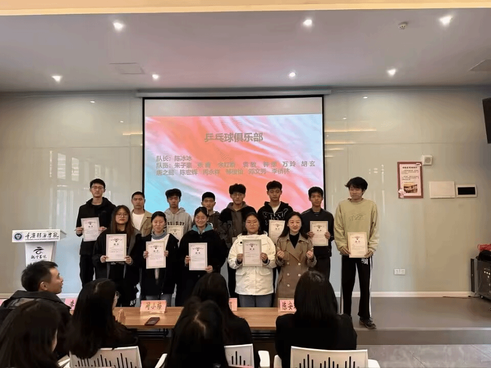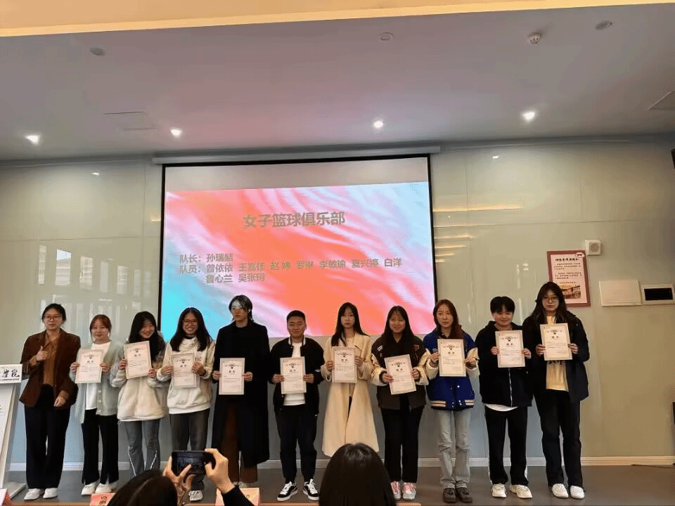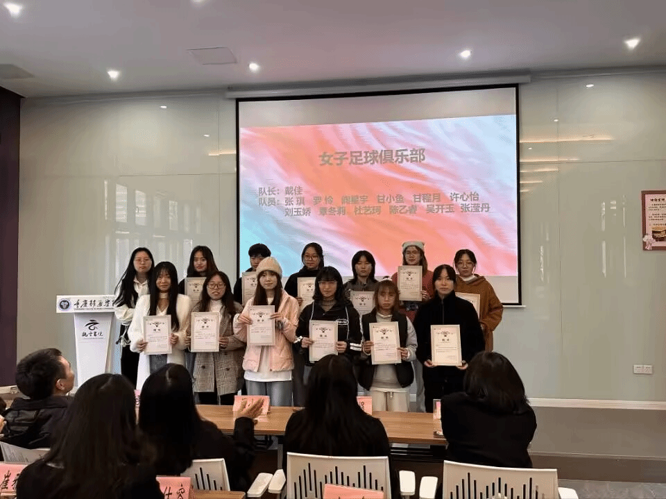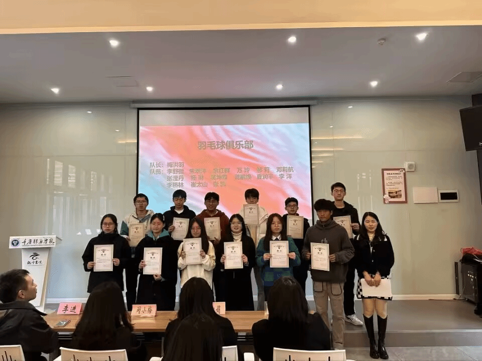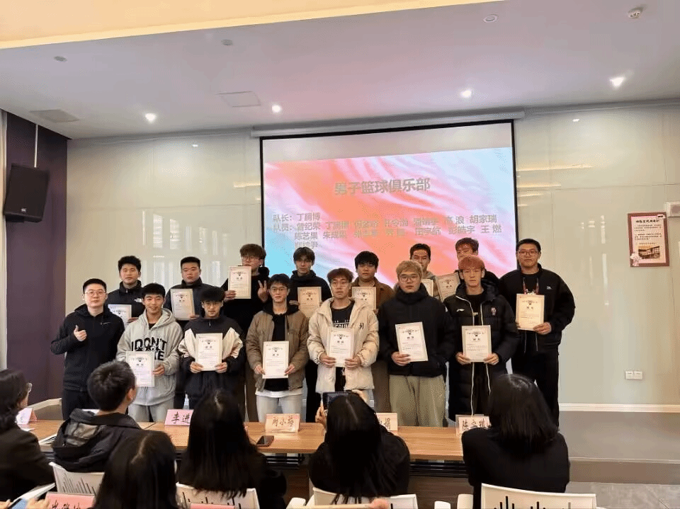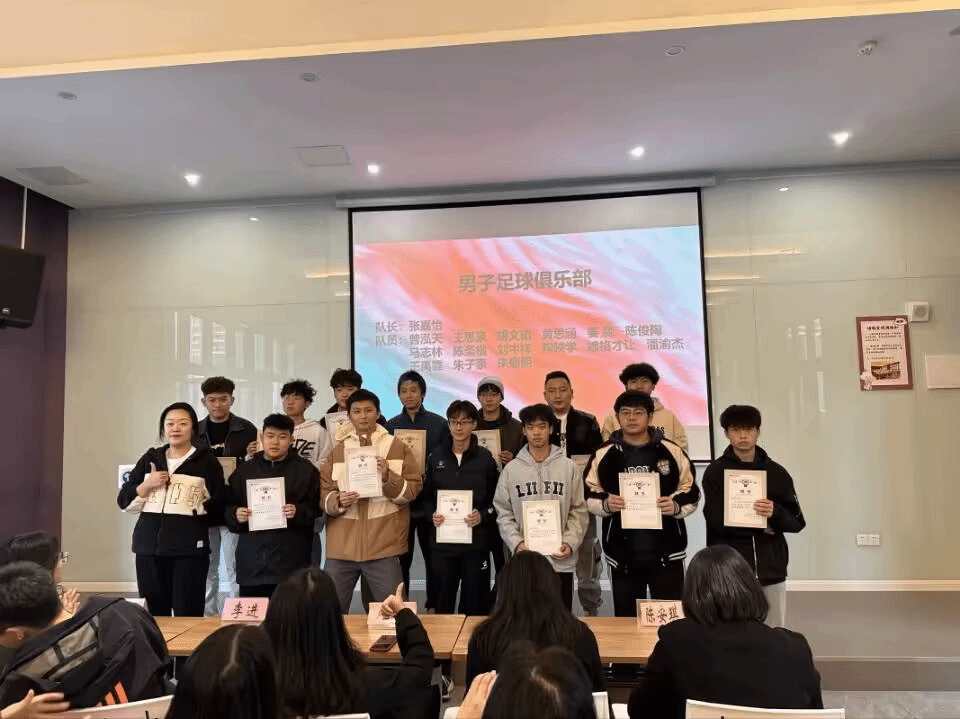 第二项议程由辅导员为“新生杯”的球队成员颁发聘书及为获奖球队颁发奖牌,由男子篮球、女子篮球、男子排球、女子排球、男子足球、女子足球这六支队伍在新的一学年共同为学院取得了新的荣耀。紧接着是为俱乐部球队颁发聘书,今年的俱乐部共有男子篮球队、女子篮球队、男子足球队、女子足球队、羽毛球队、乒乓球队这六支队伍,让我们期待他们的精彩表现吧!
