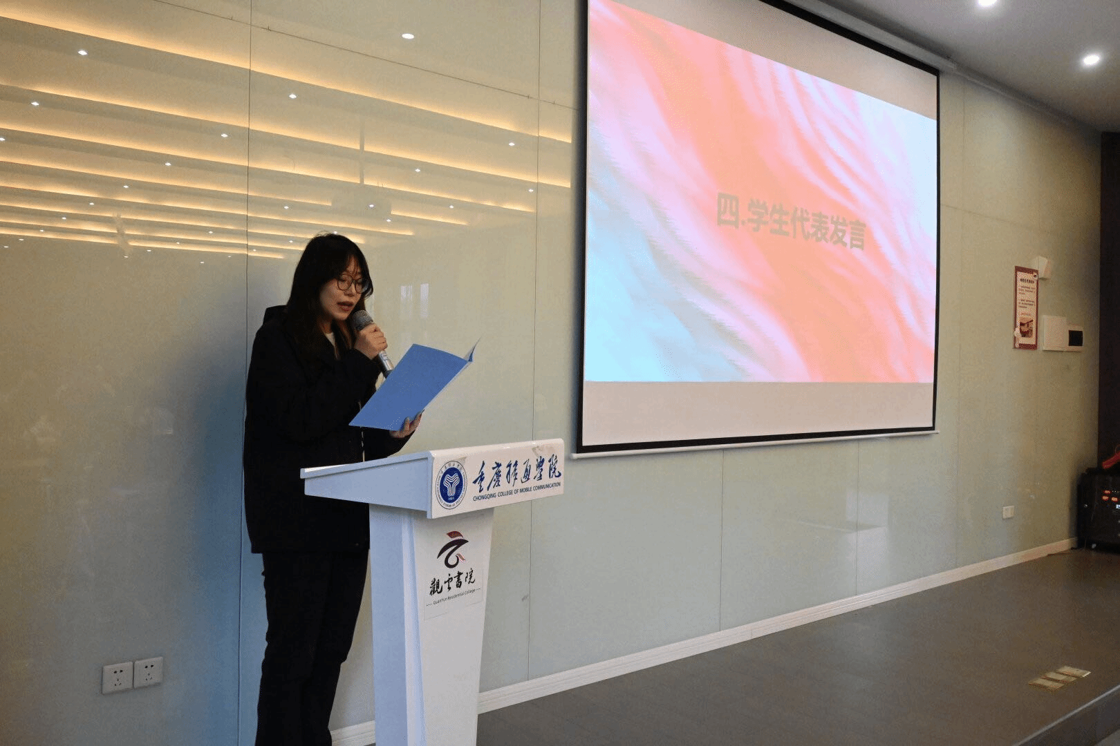 第三项议程由学生代表孙瑞鲒同学讲话,孙同学号召大家都能在俱乐部中成长以及学习,自强不息。