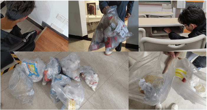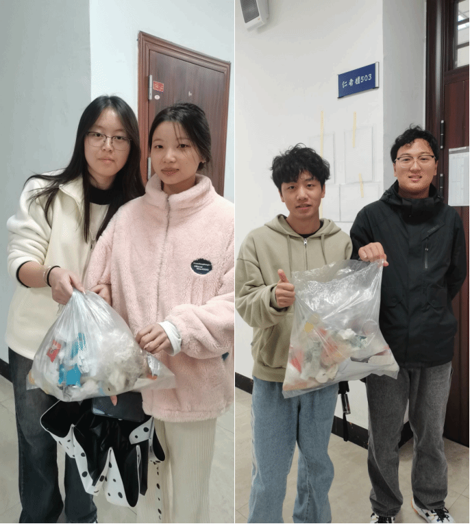 活动开始后,各小组成员穿梭在仁者楼的各个教室,清理残留垃圾。在清理中,同学们俯身弯腰,不怕脏不怕累,在角角落落找寻遗落的垃圾。不久后各小组“收获”满满,仁者楼光彩依然。