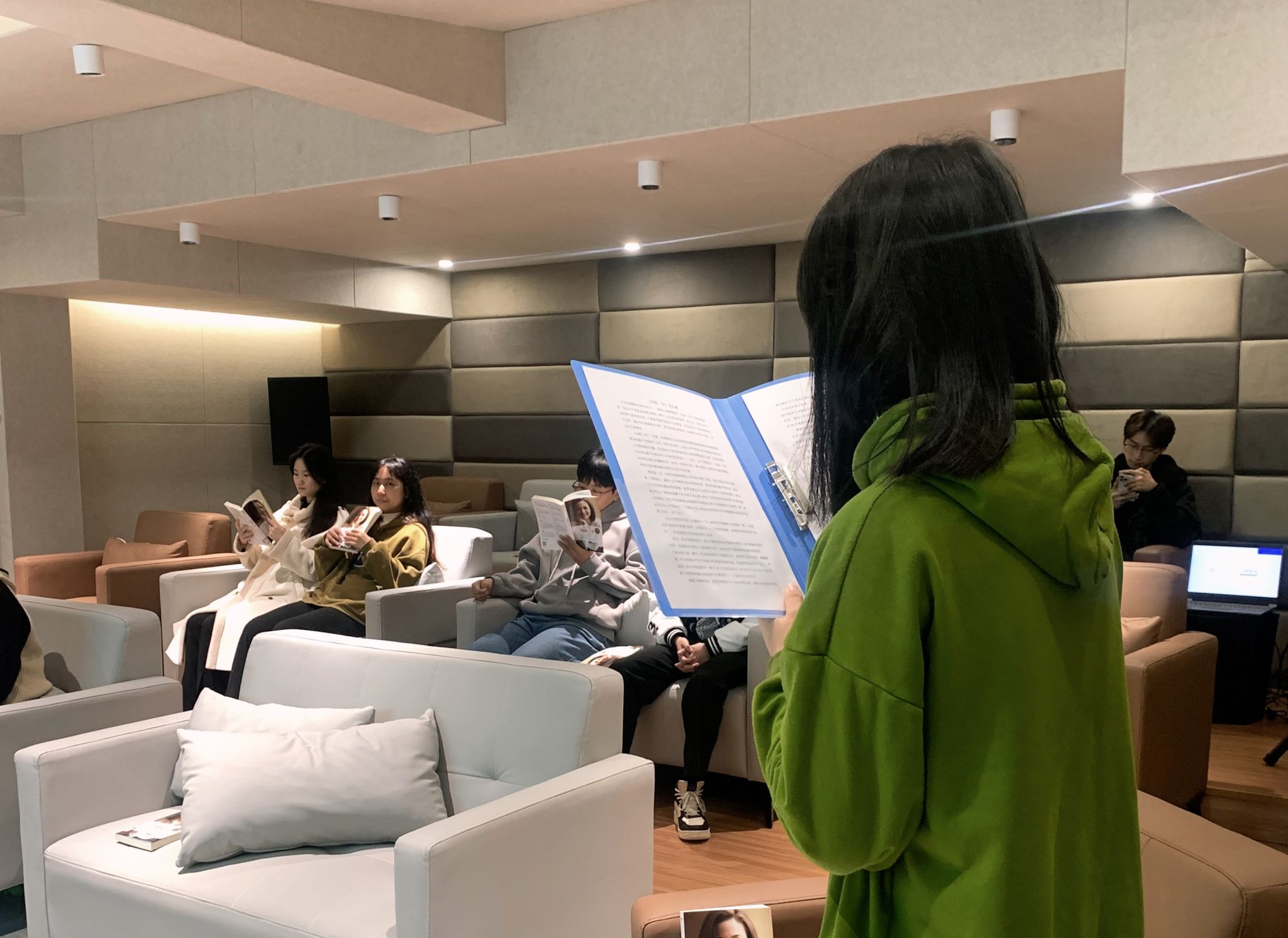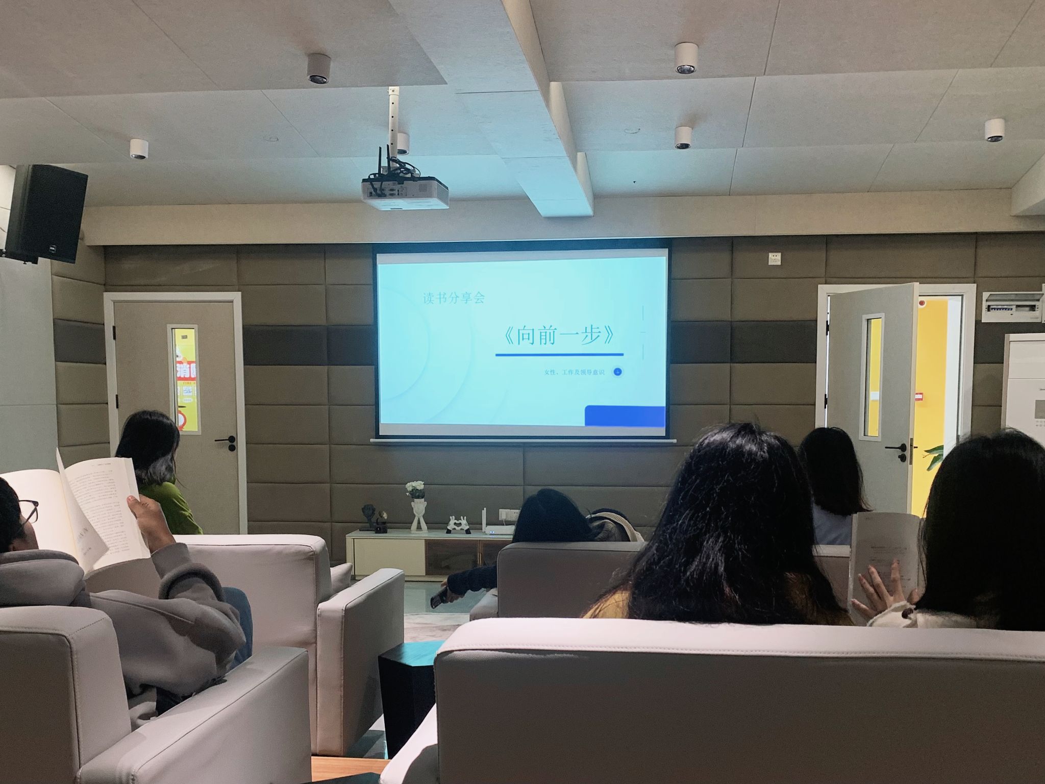 向前一步,一是指“勇敢坐到桌前参与讨论,不要害怕表现自己”;二是指积极进取,实现全部潜能,追求更高远的梦想。在观看完视频后,刘馨璐、张威同学分别进行精选片段领读,并为大家分享读书感受,刘馨璐同学对于职场女性在职场与家庭之间如何平衡的问题展开心得分享,她鼓励人们:不论你的生活遭遇过什么,你依然有能力去相信美好,创造美好;向前一步,人生有无限可能!而张威同学则对于性别歧视这一问题展开了心得分享,他鼓励人们今后正视生活中的性别歧视,抛弃那些陈旧的观念,建立起属于自己的自信,向前一步,永远进取!