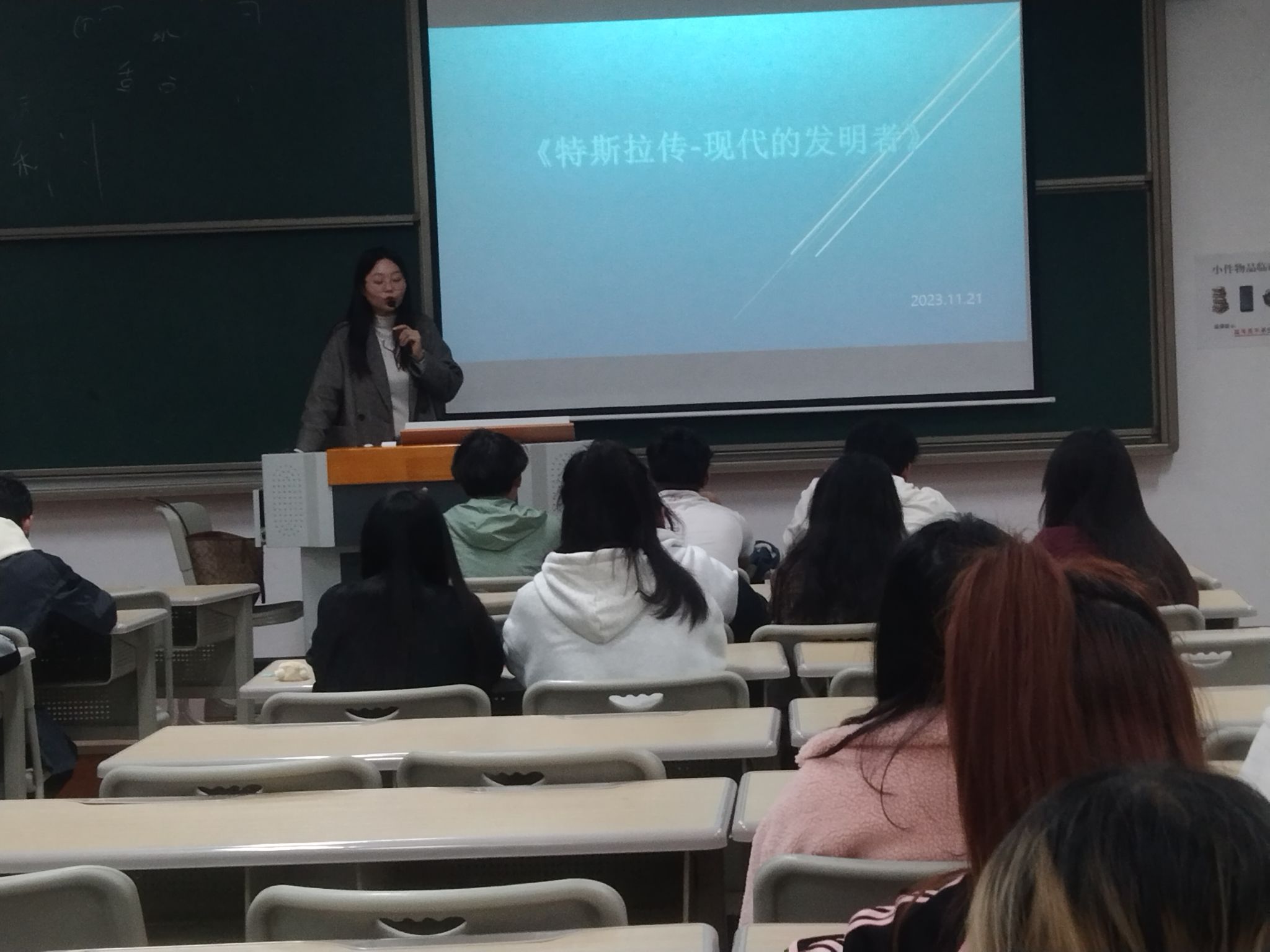 首先,简云丹老师给同学们分享了《尼古拉·特斯拉传》的相关内容。提到“特斯拉”,同学们第一个想到的就是现在的特斯拉电动汽车。但其实很多同学不知道的是,特斯拉汽车的创始人,正是为了致敬他的偶像“尼古拉·特斯拉”,才讲自己创立的电车品牌命名为“特斯拉”。简云丹老师以此为导入,给大家解读了《尼古拉·特斯拉传》中,作者史迪夫·劳描写的特斯拉的生平。