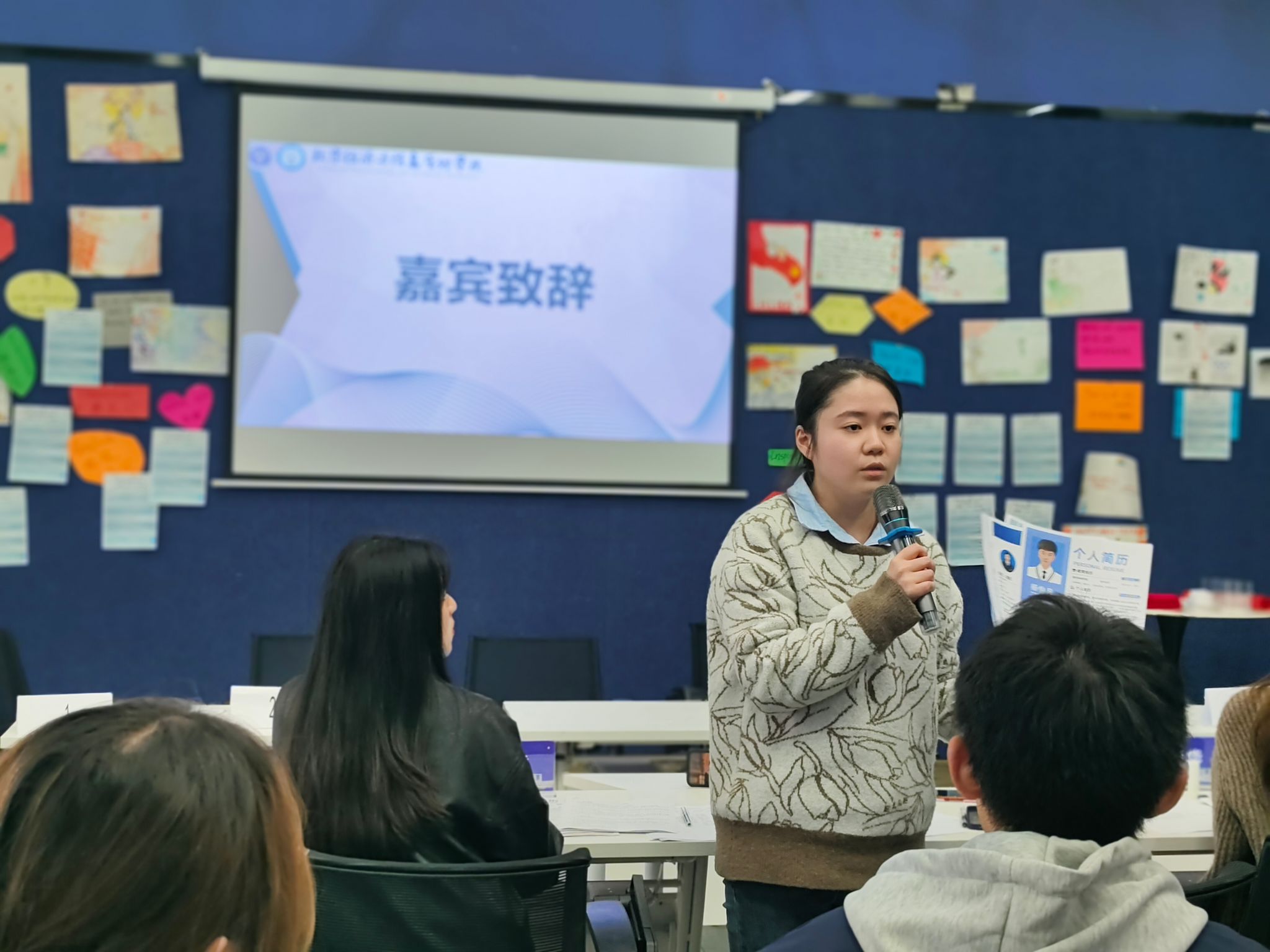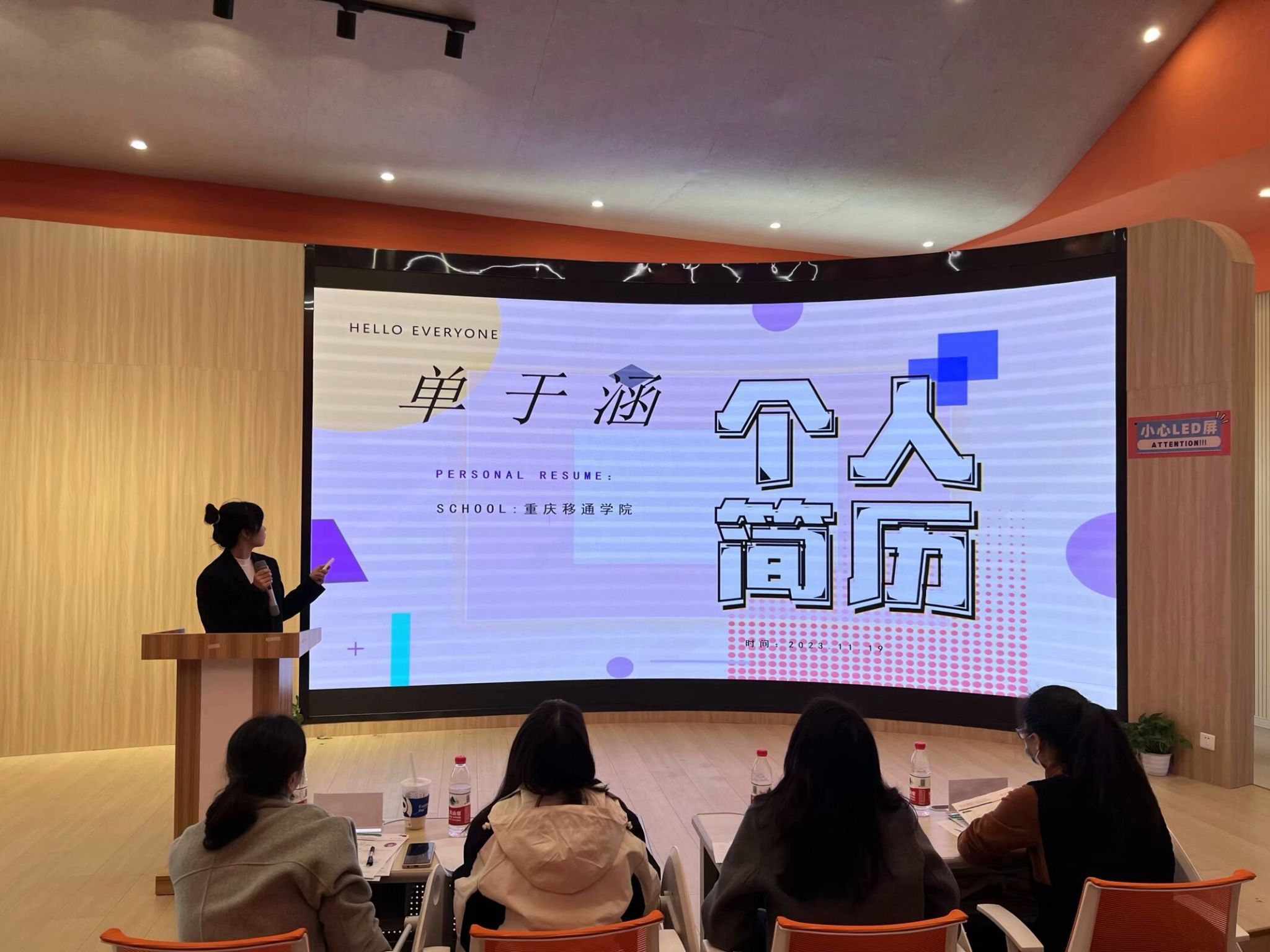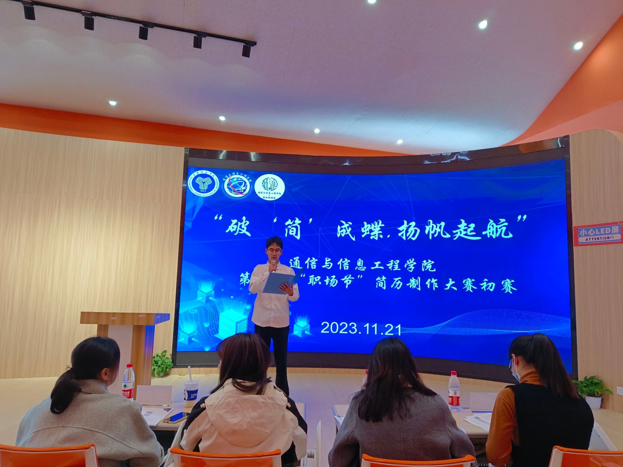参赛者们提交的简历不仅内容丰富、形式多样,还充分体现了他们对创新、独特、简洁、专业等简历制作要求的理解。各学院的参赛者们在介绍自我简历时,使出了浑身解数,其中的内容也是各具特色。有的热情活泼,以生动的语言和丰富的肢体动作让简历栩栩如生;有的沉稳自信,用从容的语气详细阐述简历内容;有的充满创意,在自我介绍和简历展示中表现出丰富的创造力,对简历结构设计的独特创意和对简历内容阐述的妙语连珠,展示了大学生们对未来求职就业的认知,充分绽放出青春的魅力风采。