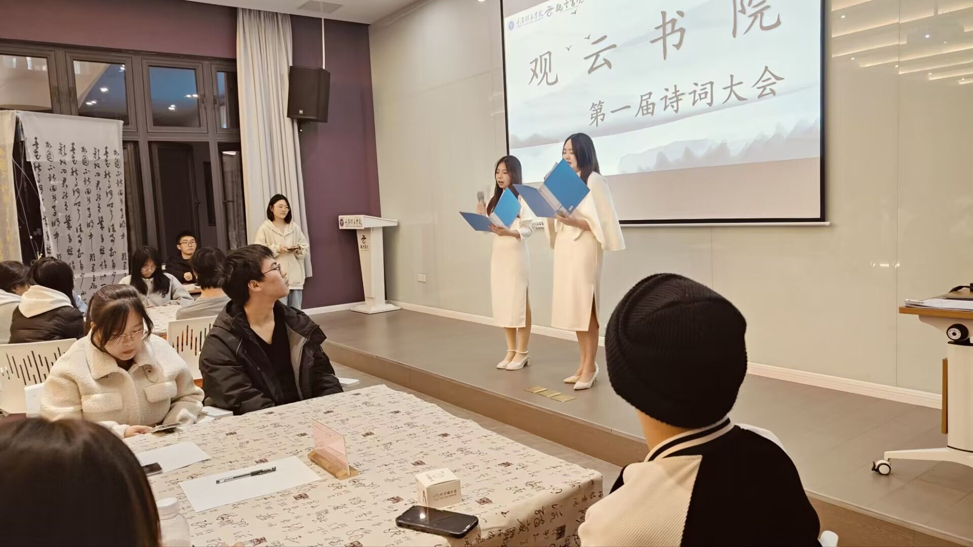 中华民族有五千多年的文明史,而诗词正是带我们穿越古今、重温灿烂辉煌文明之光的钥匙。一诗一词一世界,一联一阙总关情。从唐诗到宋词,再到元曲,名篇浩如烟海,名家各领风骚。11月22日,大数据学院异科导师杜荧班级联动观云书院于冬至·多媒体教室成功举办了诗词大会活动。