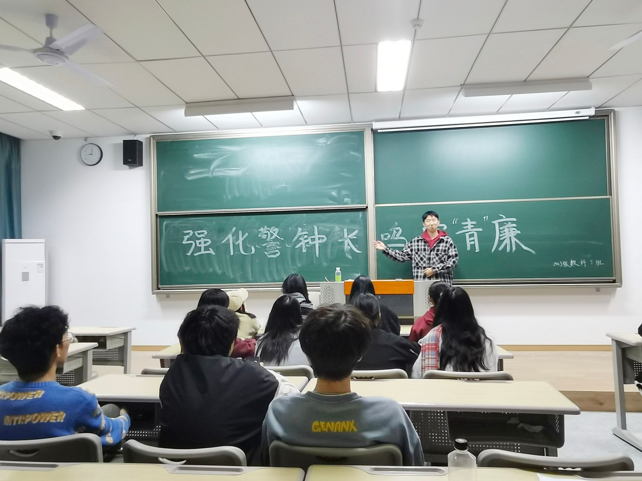 “历览前贤国与家,成由勤俭破有奢”。眺望历史的霭霭烟云,腐败都是历朝历代无法避免的问题。为了提升同学们的廉洁意识,11月23日,大数据学院2023级数据科学与大数据5班在行者楼101教室开展了以“强化警钟长鸣,守‘青’廉”为主题的主题班会。