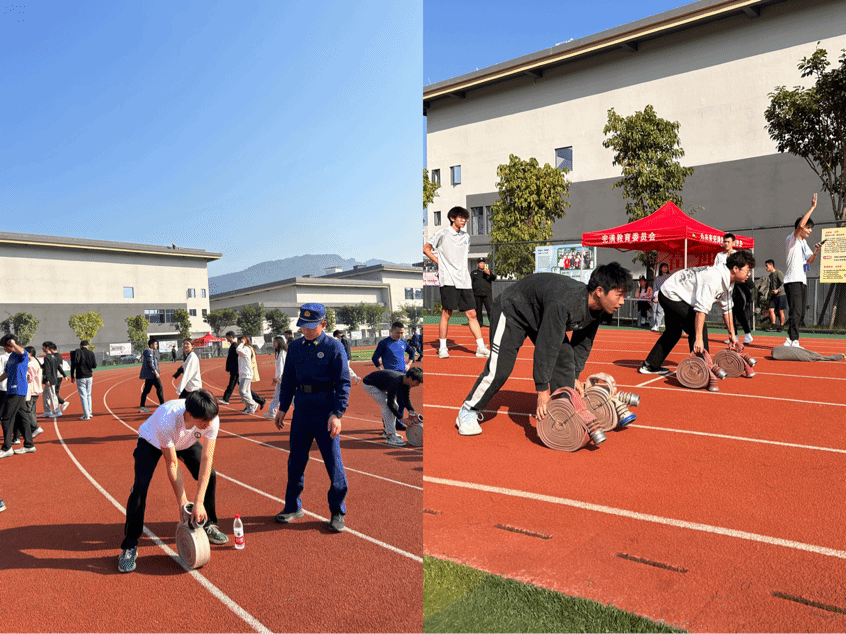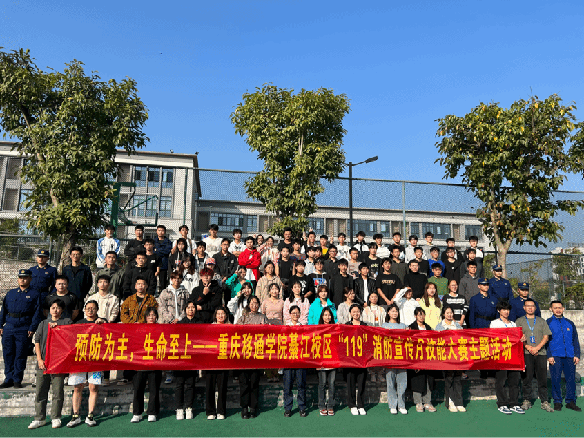 11月是一年一度的消防安全宣传月,为进一步激发全校师生员工关注消防安全的热情,提升消防安全意识,强化消防基本技能,建设平安、美丽、和谐校园。2023年11月27日下午,重庆移通学院綦江校区在运动场举行了“119”消防宣传月技能大赛主题活动。