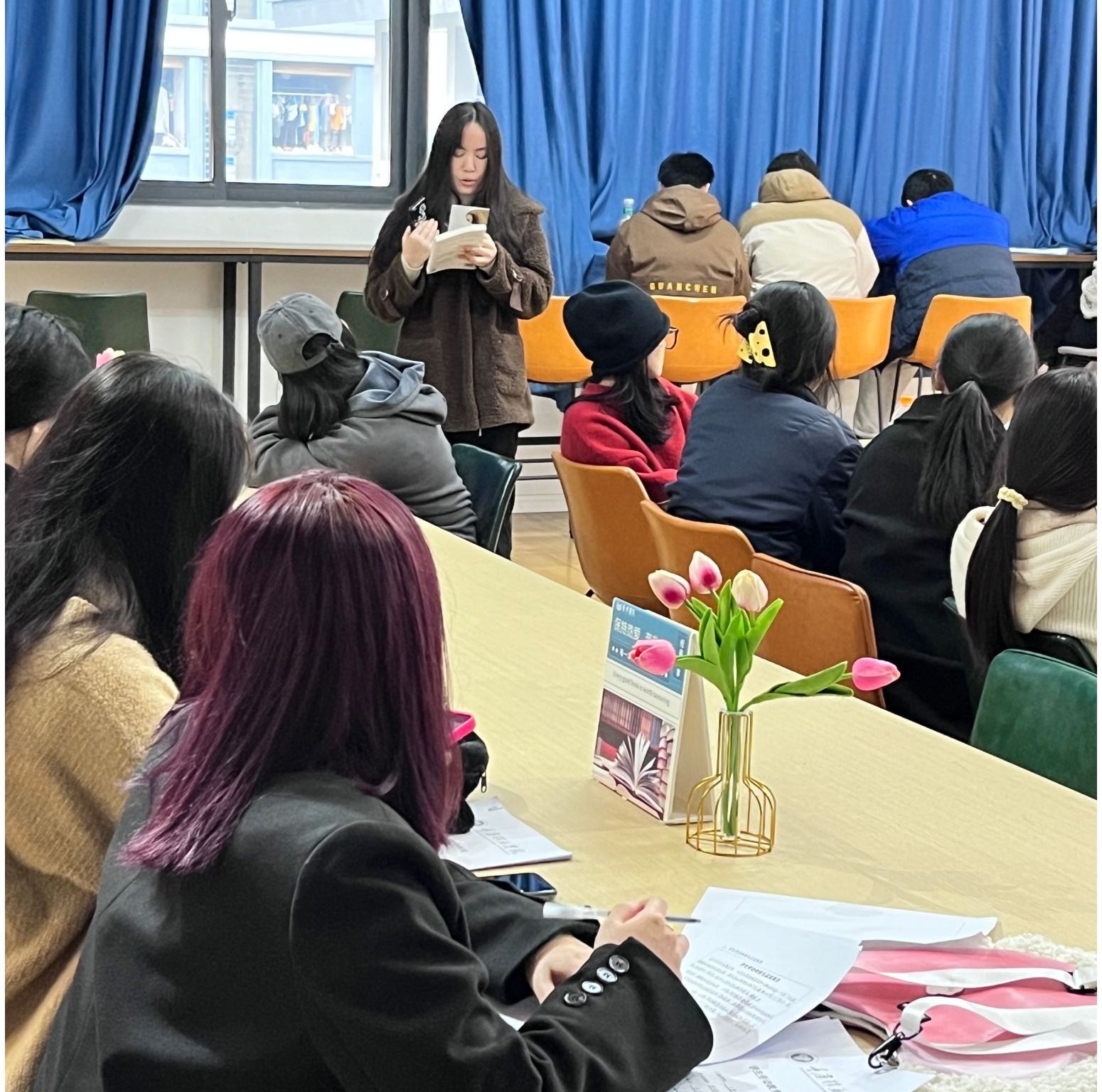 最后在分享交流阶段,老师和同学们共同提及起近期热播的一档职场类综艺《令人心动的Offer5》,女性角色在职场中面临的困境,及其突破困难的坚韧力量从中都有真是的体现。老师总结道:从这部综艺的推荐中我也开始关注并阅读了这本书,《向前一步》不仅仅是一本关于女性的书,它也是一本关于勇气、成长和成功的书。无论你是男性还是女性,无论你处于人生的哪个阶段,这本书都会给人带来深刻的启示和帮助,只要我们勇敢地迈出一步,就能够创造出属于我们自己的精彩人生。