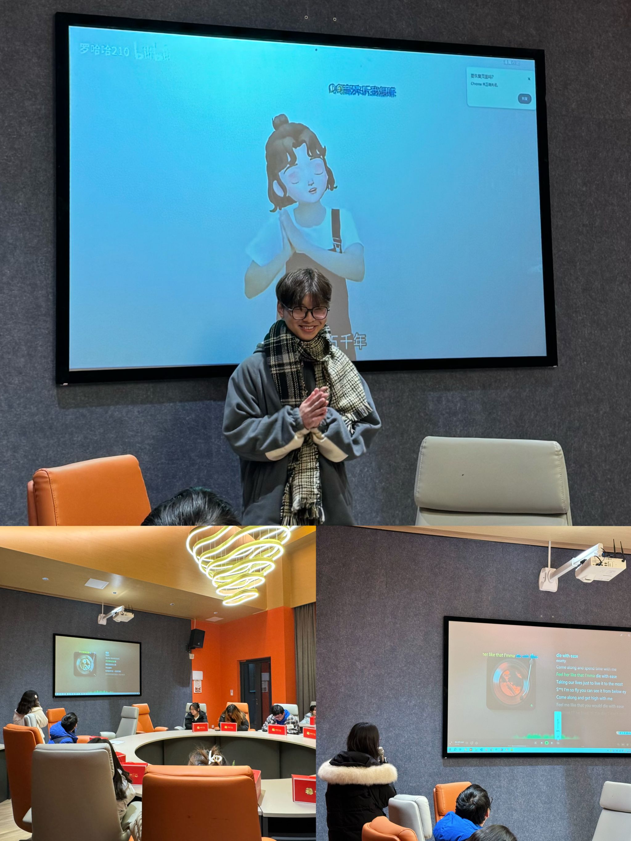 为进一步缓解同学们期末考试的压力,本次活动还特别设置了趣味活动环节。同学们在舞台上展示了丰富多彩的表演才艺,如手势舞和歌曲演唱等。这些充满活力的表演既展现了同学们多才多艺的一面,也为大家提供了一个放松心情、增进友谊的机会。