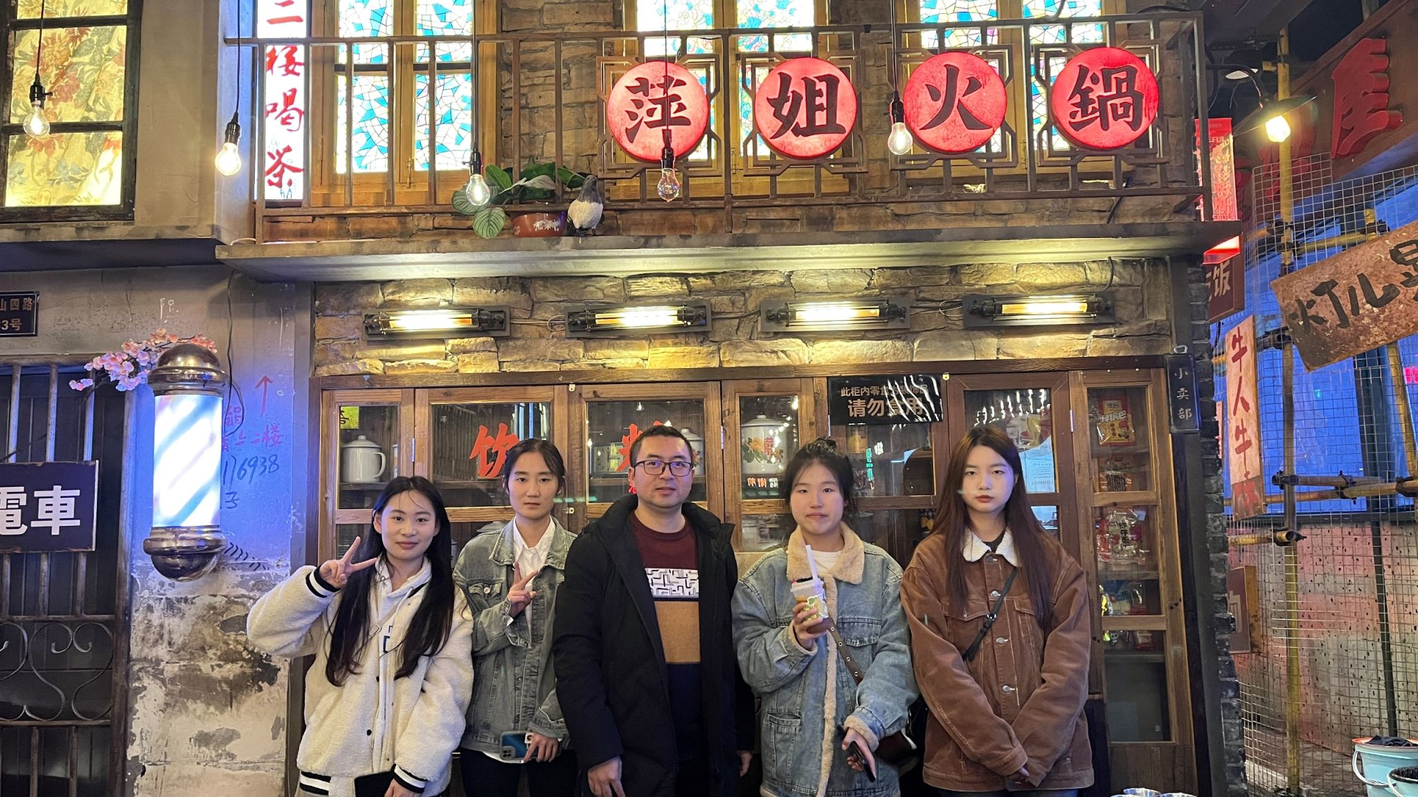 活动接近尾声,师生们敞开心扉,互相分享着校内外生活及自身在就业方面的看法。周冬杨老师提出了自己对学生的期望,希望同学们对自己的生活和未来有所规划,注重自身专业领域的实质性突破,这也进一步加强了师生之间的联系,促进了同学们交流和友情的建立!最后,师生们在餐叙活动打卡地前合影留念。