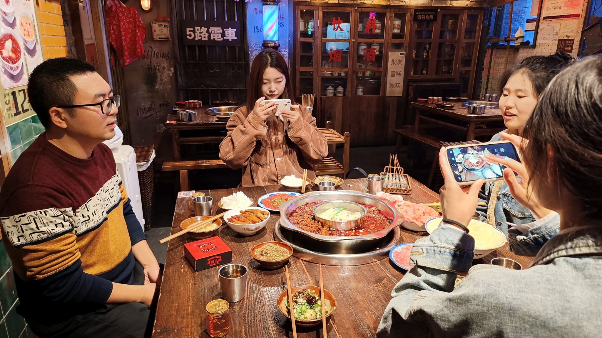 餐叙活动伊始,师生们共同享受着食物带来的味蕾上的碰撞,并同时对美食进行打卡记录,现场欢乐场景勾起了周冬杨老师对自身以往的回忆,他将自己在校期间的经历向同学们娓娓道来,此次餐叙活动也在一片欢声笑语中正式拉开帷幕。