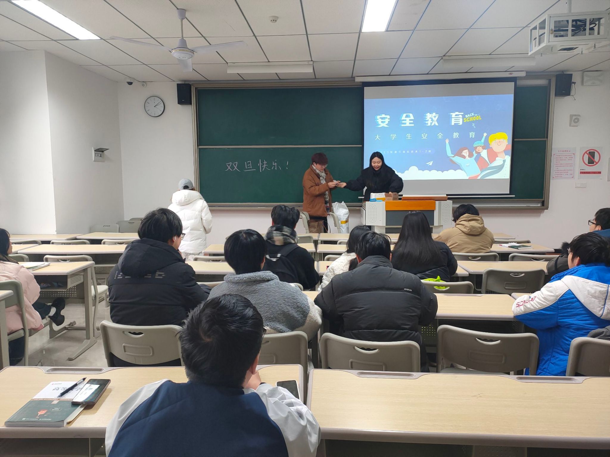 期末将至,同学们即将迎来元旦和寒假。为加强学生的安全意识,让同学们能够平安、开心迎接元旦。2023年12月19日下午2点,简云丹老师在仁者楼309给35位同学开展了安全教育及元旦赠礼活动。