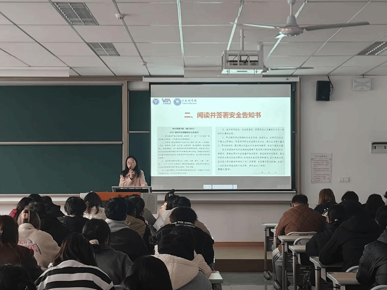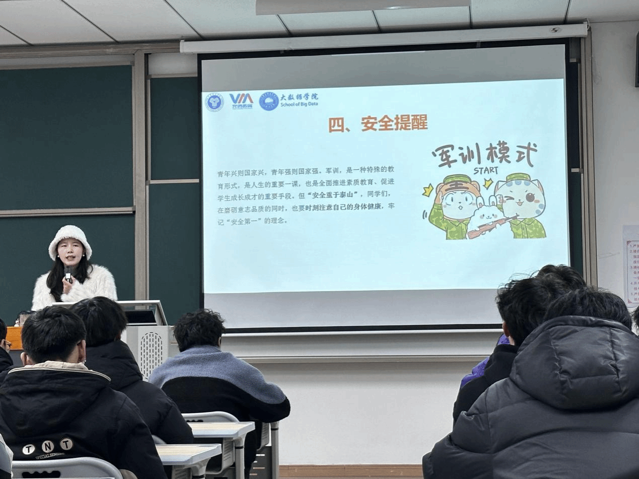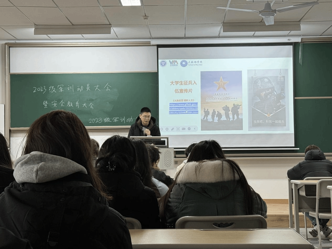 军训是学生接受国防教育的基本形式,是培养“四有”人才的一项重要措施。2023级学生们即将迎来为期14天的军训,为了进一步强化学生国防教育,提高军训期间的风险防范意识和能力,确保军训工作顺利、平稳、有序地进行,大数据学院全体辅导员在军训前夕,在观云书院、行者楼等地组织了2023级学生军训动员会暨安全教育主题会。