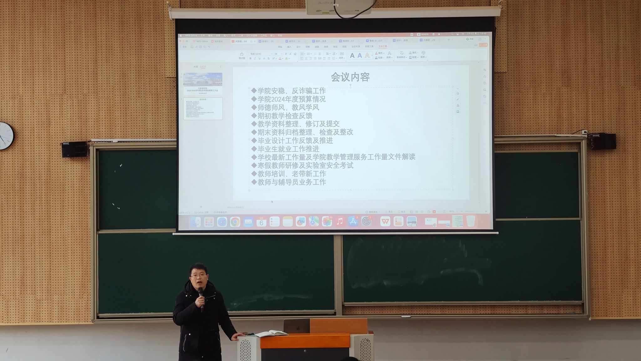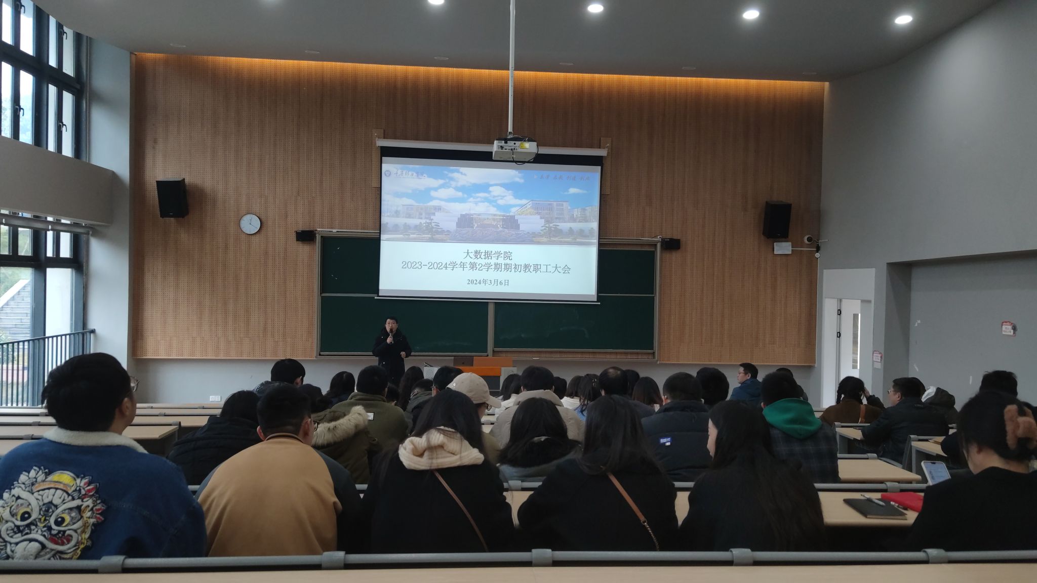 为加强工作部署和学期规划,增强学院教职工凝聚力,提升整体综合教学素质和能力,3月6日下午4点,大数据学院在横山书院阶梯教室召开了2023-2024学年第二学期期初教职工大会。会议围绕学院安稳、反诈骗工作、毕业设计与毕业实习、师德师风、教风学风等多个议题进行了详细部署和深入讨论。会议由闫会峰院长主持,吕云山副院长主讲。