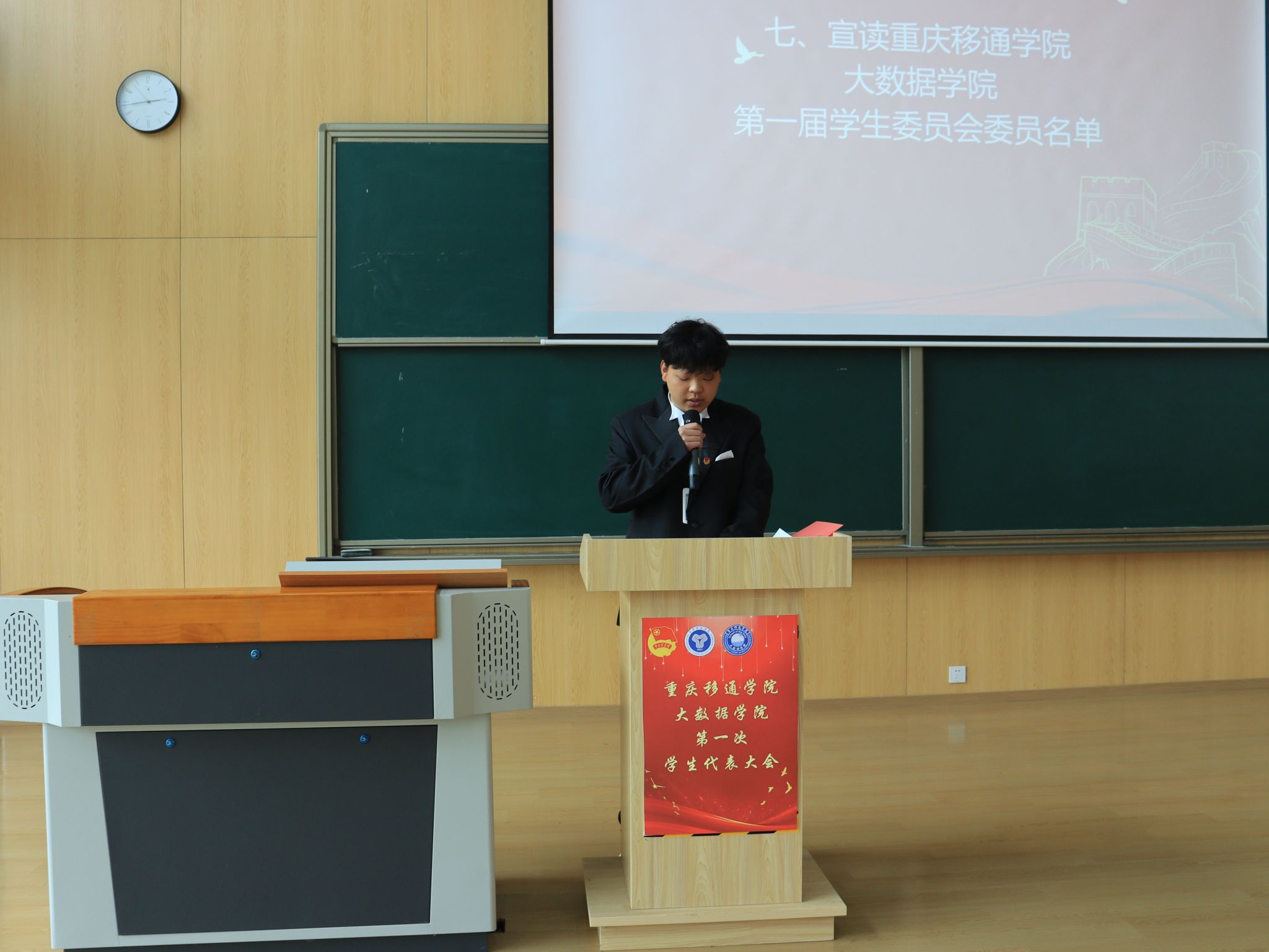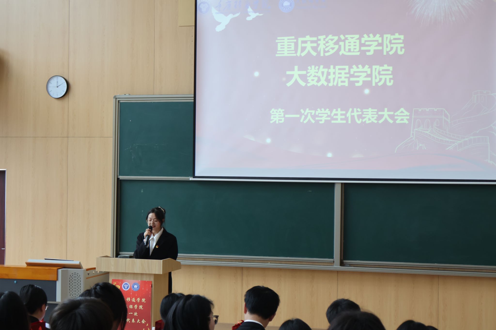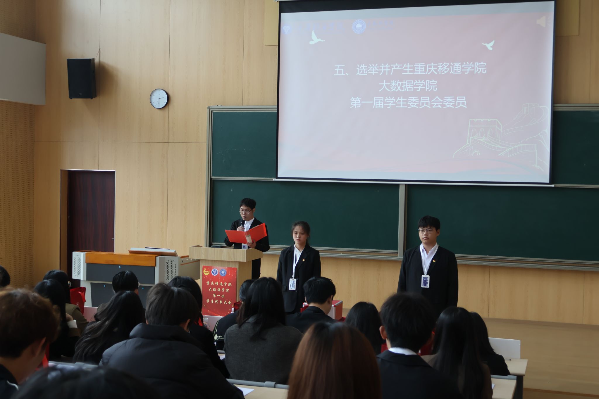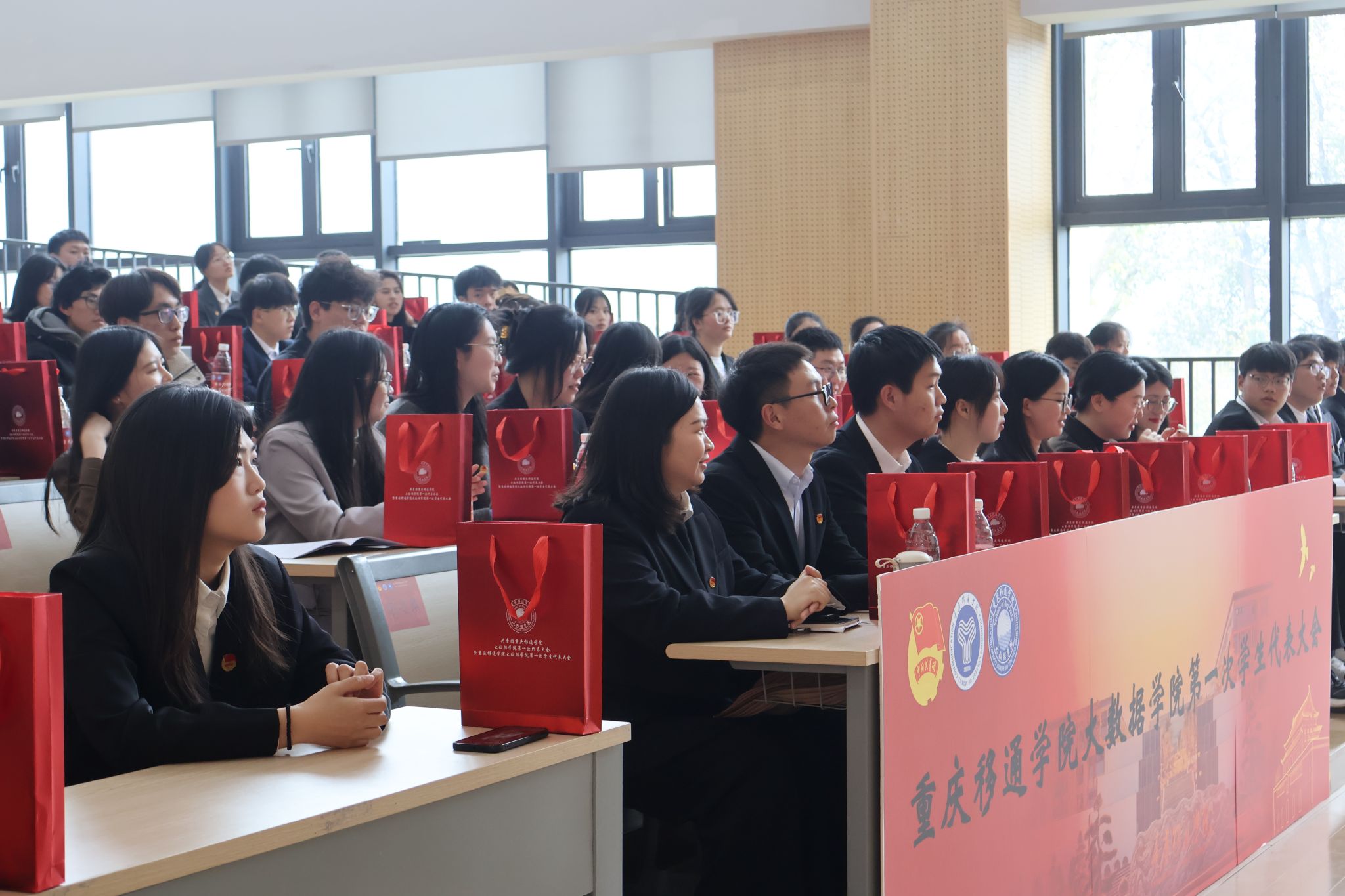 重庆移通学院大数据学院第一次学生代表大会于2024年3月15日下午14:00在玉棠书院阶梯教室顺利召开。校团委学生会指导老师曹誉莹、钟玉寒老师,大数据学院学工副院长阙小梅老师、团总支书记兰宇老师、学工办主任李进老师以及大数据学院全体辅导员老师等,与45位学生代表共同参与本次盛会。