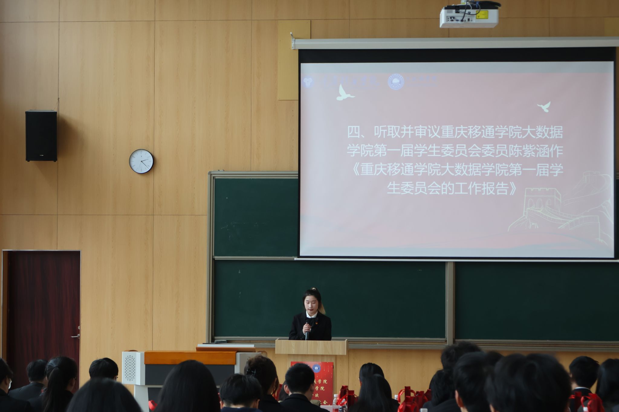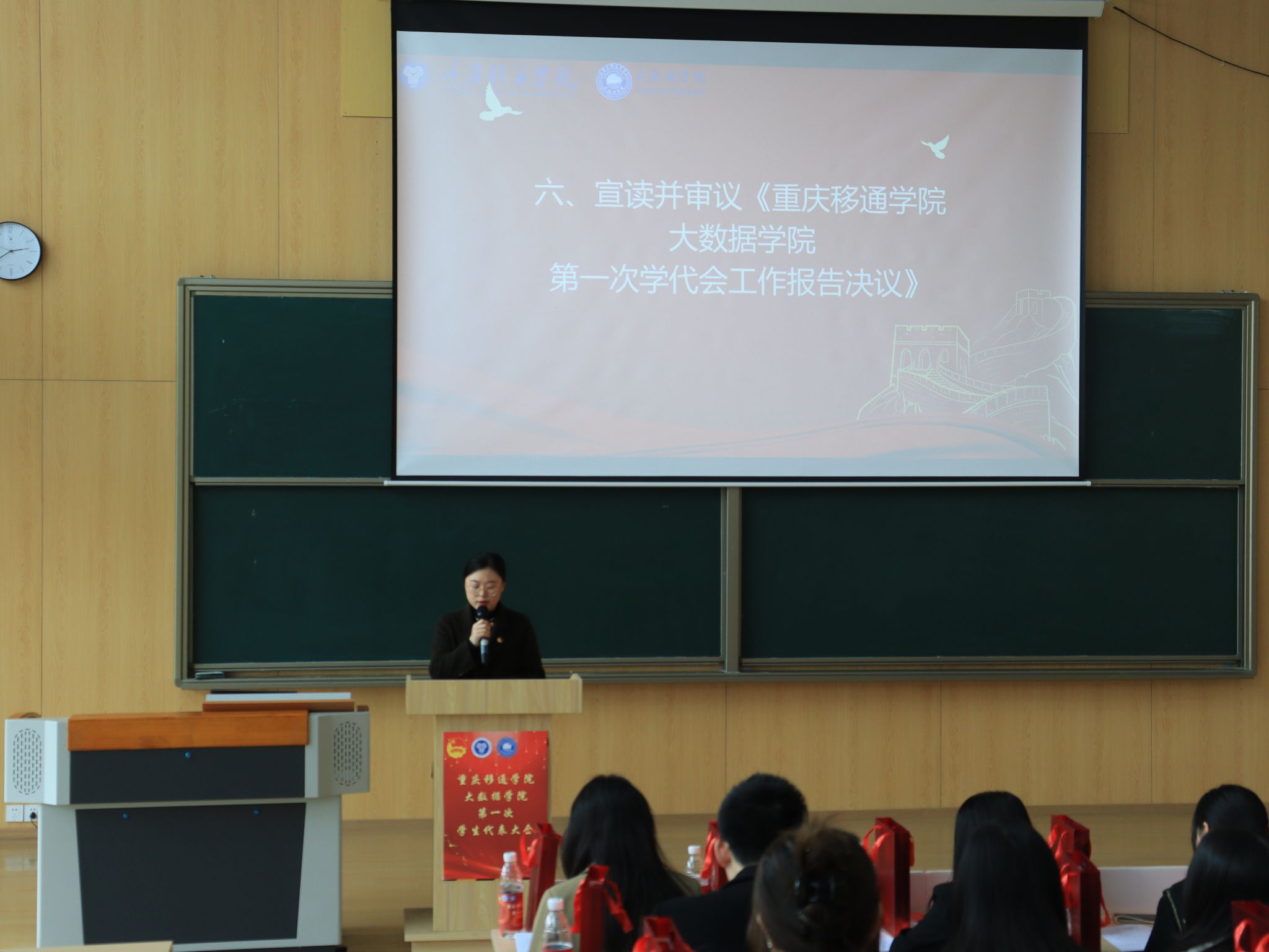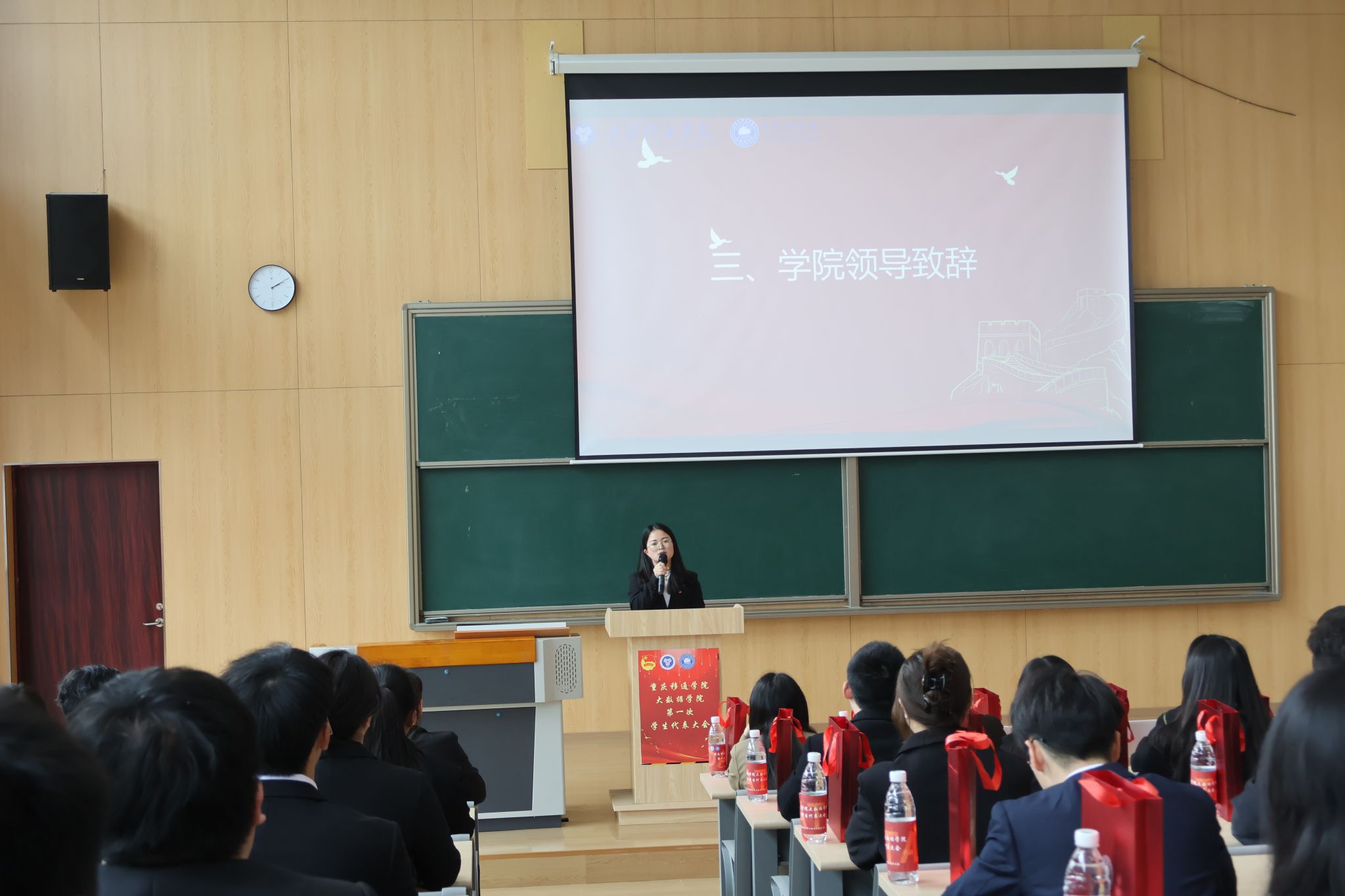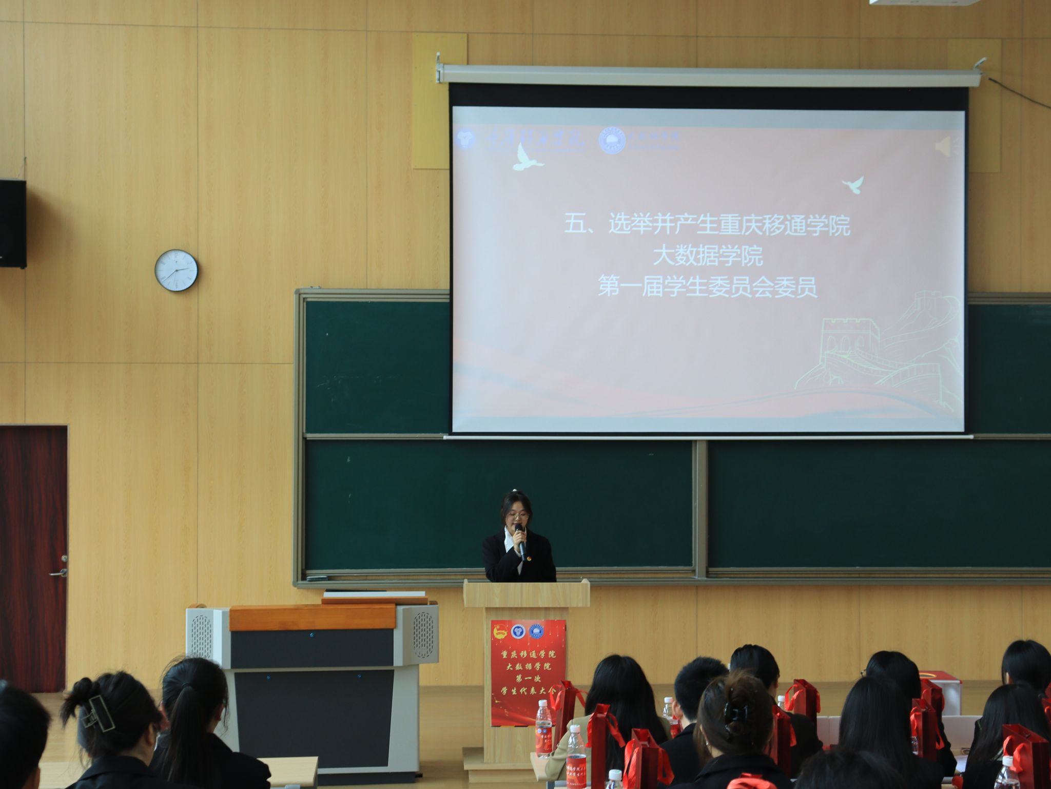 重庆移通学院大数据学院第一次学生代表大会于2024年3月15日下午14:00在玉棠书院阶梯教室顺利召开。校团委学生会指导老师曹誉莹、钟玉寒老师,大数据学院学工副院长阙小梅老师、团总支书记兰宇老师、学工办主任李进老师以及大数据学院全体辅导员老师等,与45位学生代表共同参与本次盛会。
