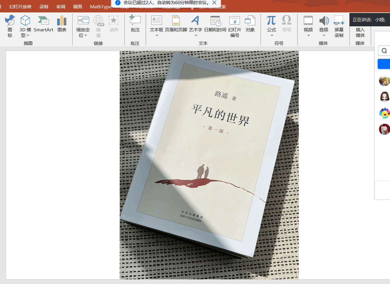 一场别开生面的线上读书分享会,2024年2月20日在腾讯会议平台举行。此次分享会的主题是路遥的经典小说《平凡的世界》,同学们纷纷在云端相聚,共同探讨这部作品的深刻内涵和人生启示。