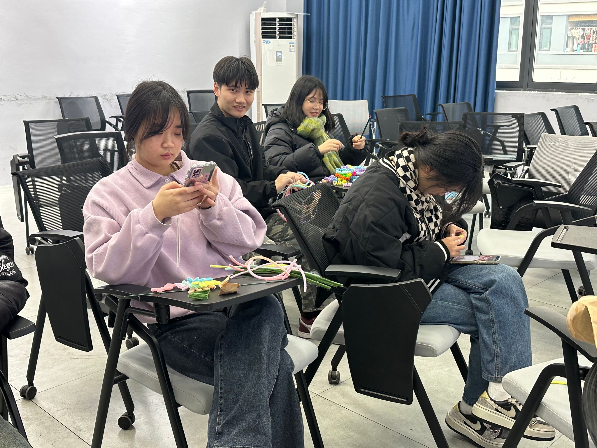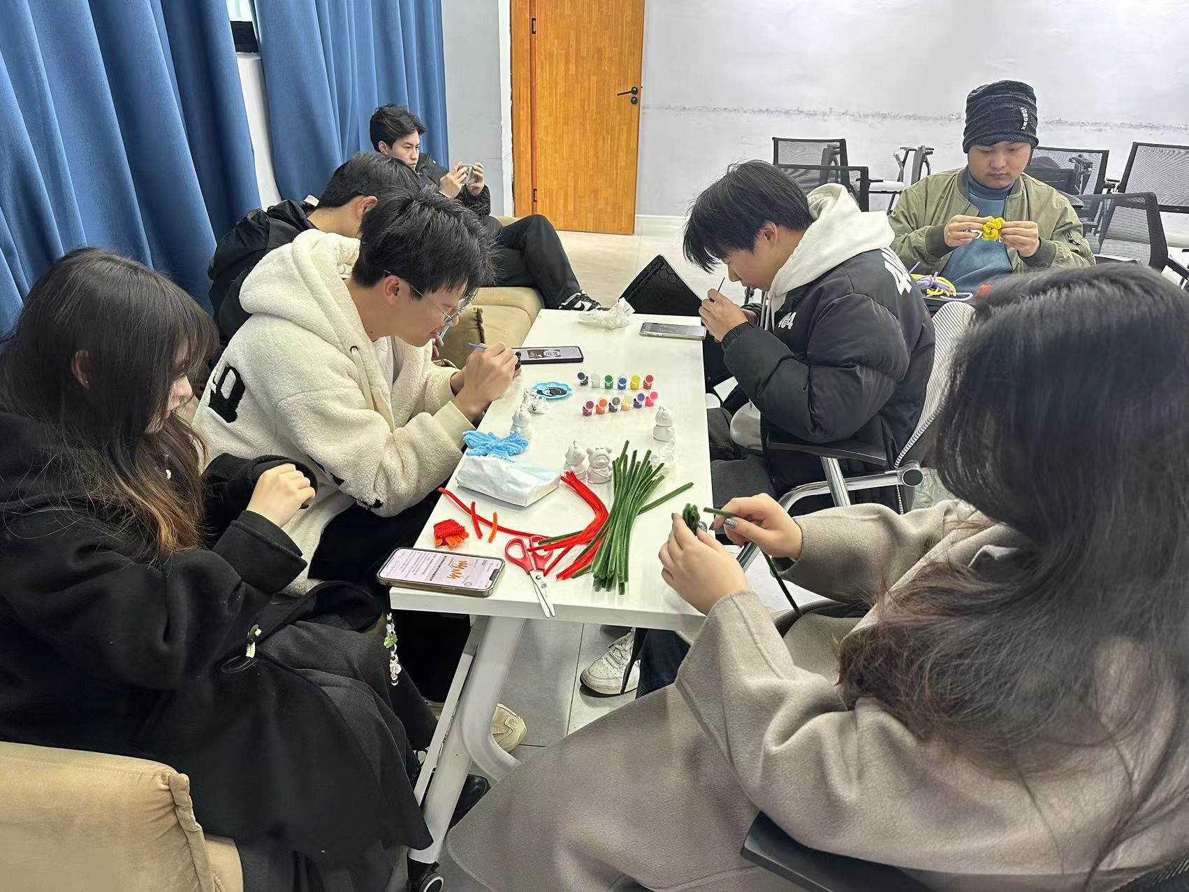 阳春三月,校园里焕发新的生机,大地上弥漫着花香和青草的清香。为了积极贯彻“以学生发展为中心”的教育宗旨,让学生充分体验完满教育的教学理念,2024年3月15日,大数据学院2023级数字媒体技术专升本7班、8班异科导师王建航联合计算机学院2023级计算机科学与技术专升本4班异科导师李子涵在綦河书院演讲培训室举办了一场手工编花活动。班上的同学们一起参与手工制作活动时,相互协助、交流和分享创意,共同完成作品。同学们在合作和共同努力的过程中同学们体验到无比的成就感和满足感。