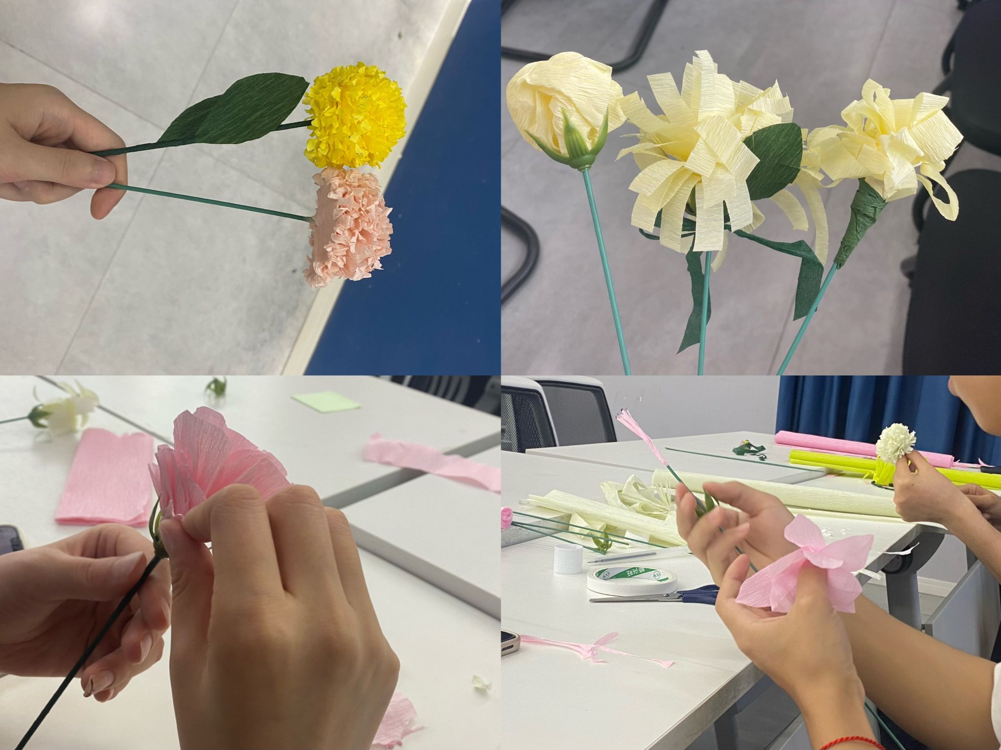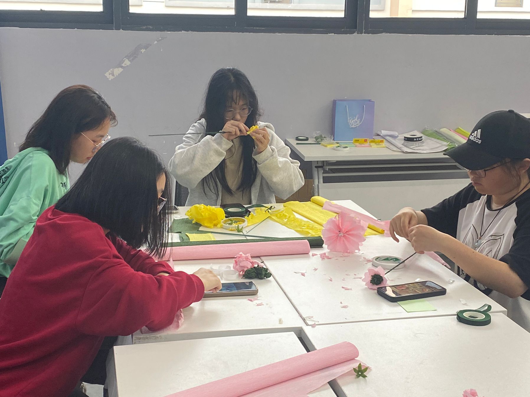 在这个特别的日子里,同学们手中的纸张经过巧手折叠,变成了一朵朵生动的纸花。每一瓣纸花都承载着对先人的深深怀念,每一朵花的绽放都是对生命的赞歌。活动现场,同学们或三五成群,或独自专注,每个人都在用自己的方式,将对先人的思念融入这简单而又充满意义的动作中。