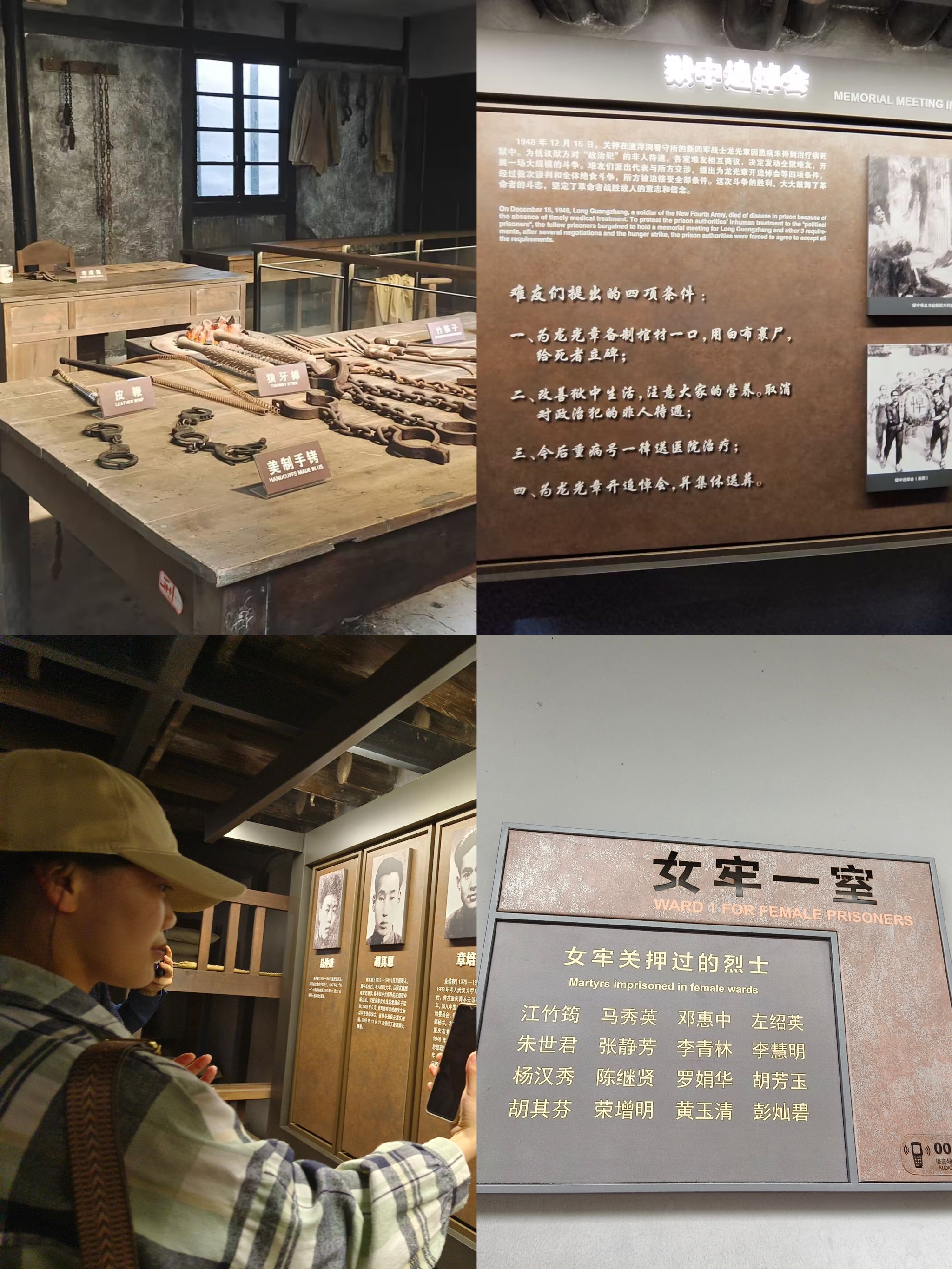 寻访渣滓洞,弘扬革命精神。同学们到达渣滓洞看守所旧址后,跟着老师的步伐,现场踏寻先辈足迹,大家看着囚室墙上遇难烈士的名单、革命志士誓死保卫的家书、刑讯室内恐怖的刑具,都展现了共产党人为了革命在监狱里与国民党反动派进行了不屈不挠的斗争,革命党人宁死不屈、视死如归的大无畏精神给大家留下了深刻印象。
