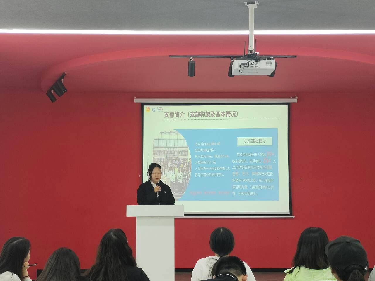“聚是一团火,散是漫天星”。第二位来自2022级数字媒体技4术班的代表人沉着冷静,分别从支部风采、未来期望等四个方面介绍4班团支部。在这个由34名同学组成的大集体中,大家一起携手同行,共同成长,团支部的每个成员在思想方面都积极向上,追求进步,都在为了班级荣誉,为了自身荣誉而奋斗。在未来,4班团支部将持续发力,充分发挥朋辈互助力量,为梦前行,携手共进,让青春更有力量。