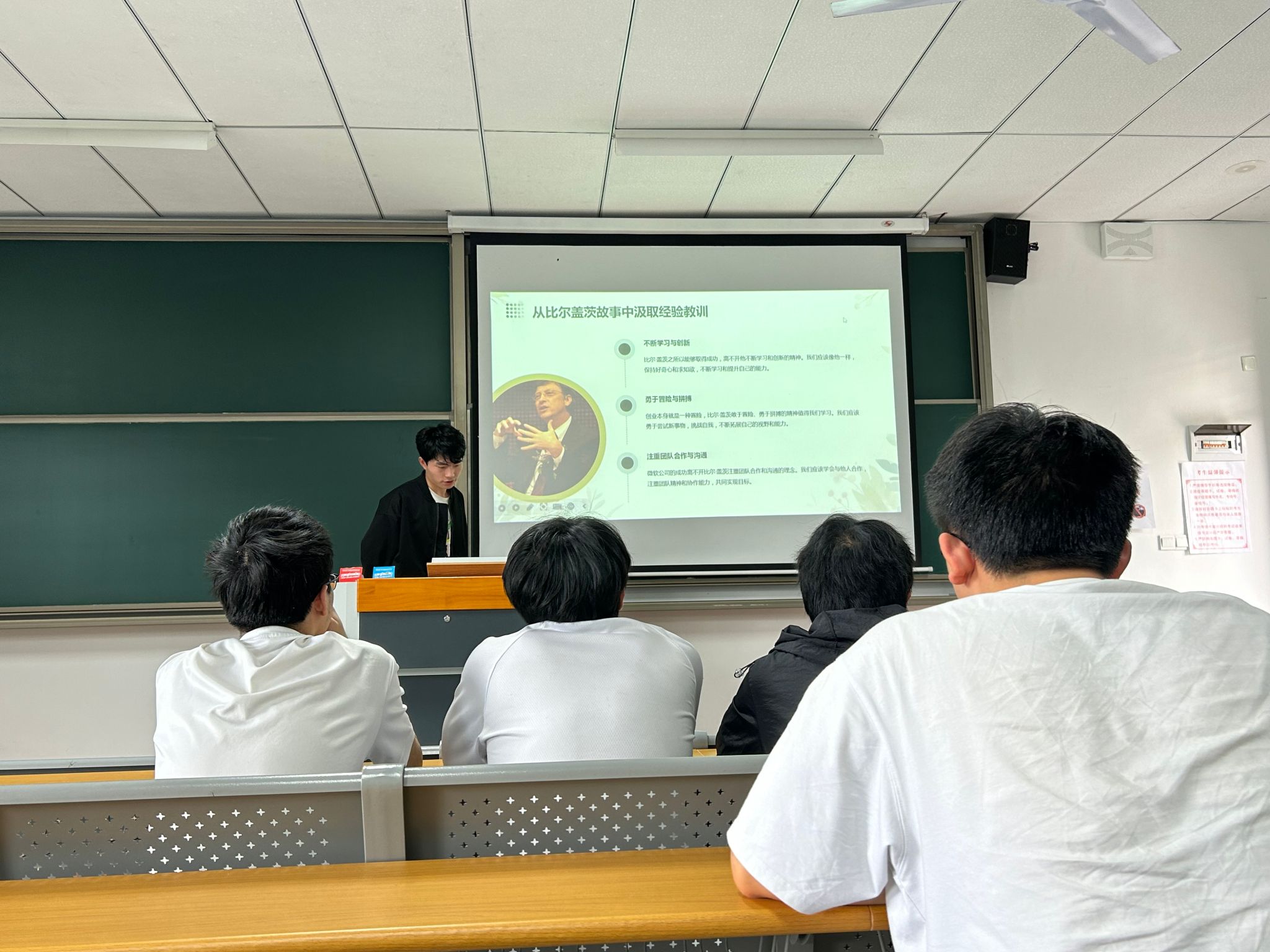 成功与人生。谈到比尔盖茨的成功秘诀,余游同学向同学们分享了以下几点:不断学习、保持好奇心和创新精神、勇于冒险和拼搏、注重团队合作与沟通等;这些都渗透在比尔盖茨个人的工作与生活之中,相辅相成,造就了比尔盖茨的成功,而这恰恰也是同学们阅读完《比尔盖茨传》后感受最深的地方。