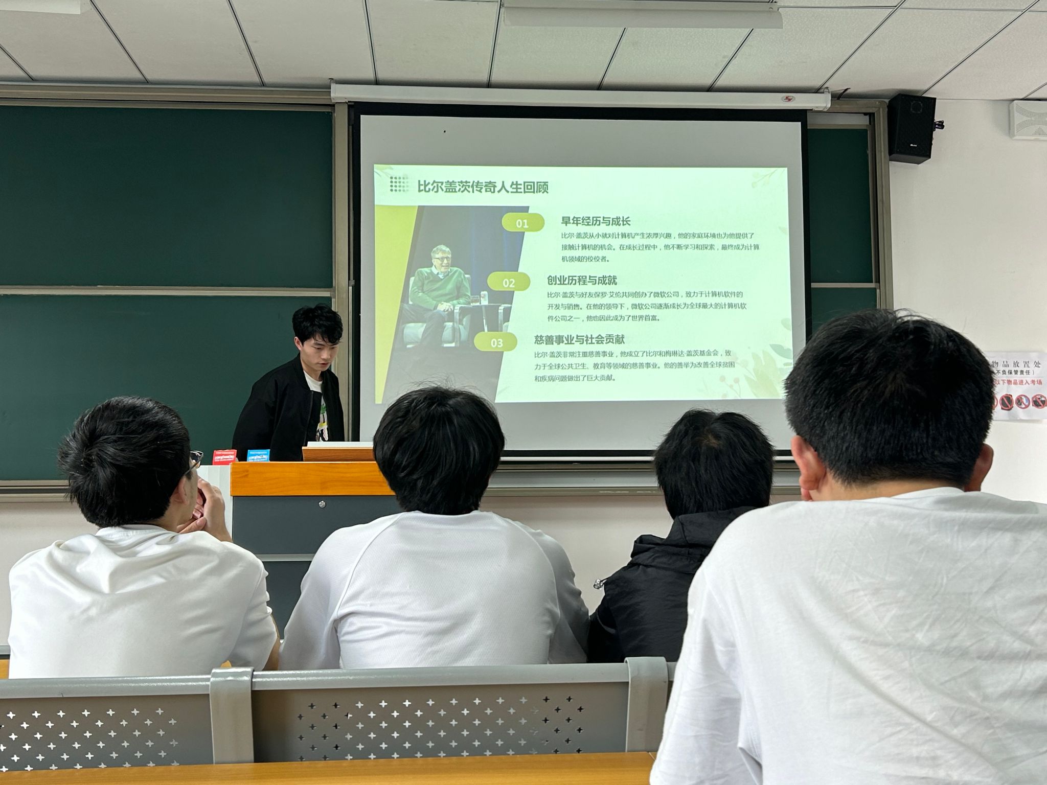 首先,主讲人余游从多个角度入手,向同学们呈现了其对比尔盖茨的介绍。