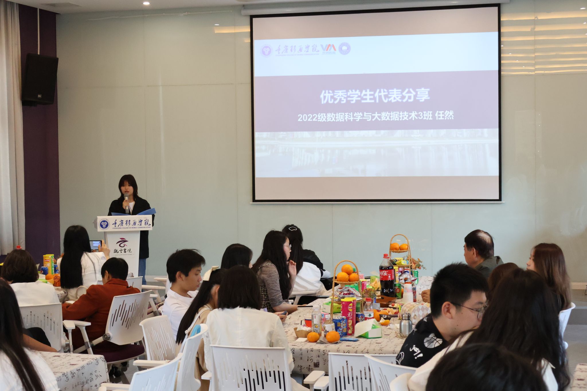 下午,家长开放日在观云书院冬至多功能教室进入了茶话交流座谈环节。学院副院长阙小梅老师、团总支书记兰宇老师、学工办主任李进老师,横山书院综合办公室主任陈南西老师,数智创新先锋教学团队负责人熊文丽老师、教师代表罗成老师,以及全体辅导员、家长朋友和学生们共聚一堂,对学生成长发展进行了更深入的交流讨论。