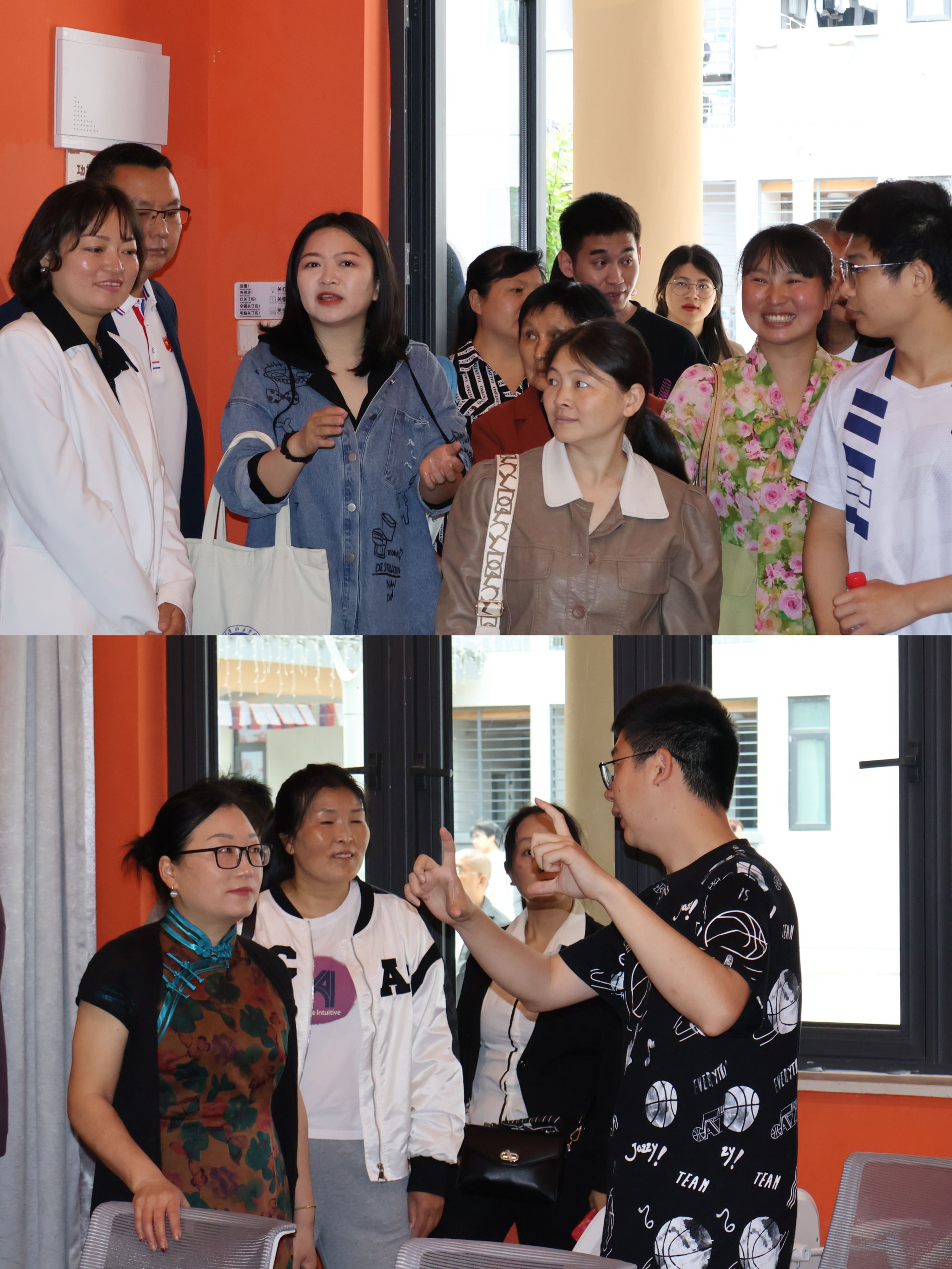 家长们来到古剑中庭,登记处签到领取学院精心准备的伴手礼,并在喷绘上签署下名字,领取孩子们给父母写下的“悄悄话”书签仔细观看,与孩子或辅导员进行合影留念,正式开启对移通的相遇之旅。在学院宣传栏处,家长们在辅导员的带领下参观学院简介、专业荣誉以及完满教育成果展示,了解学院学工辅导员团队的风采。同时,家长朋友与老师们共商共洽,在休息区展开了充分且亲切的交谈,从专业到学业,从书院到学院,从学校到社会,大家围绕学生的生活学习、思想情感、人际关系、毕业就业等方面进行了深入讨论,了解学校发展现状,关心学生成长情况,现场的氛围其乐融融。