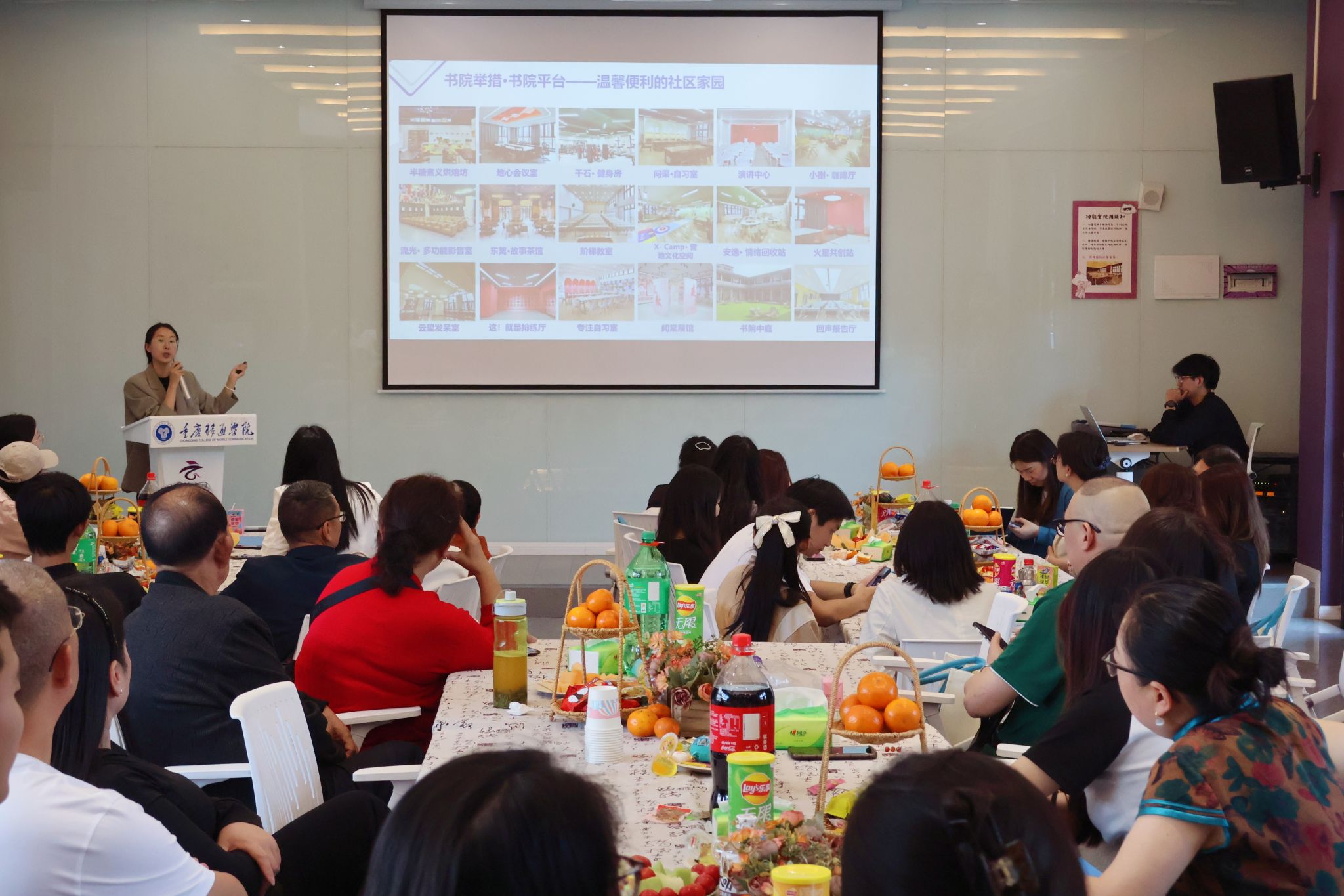 茶话交流伊始,陈南西老师为家长朋友们全方位解读了社区共享与朋辈互助新圈层,即全员书院制大学的魅力,分别从书院发展历程、硬件设施、内核支撑、社区家园、导师团队、书院生活等方面向家长朋友们展示了学校全员、全方位、全过程、全天候育人的思想政治教育新举措,让家长朋友们对“全员书院制育人模式”有了更加深刻的认识。