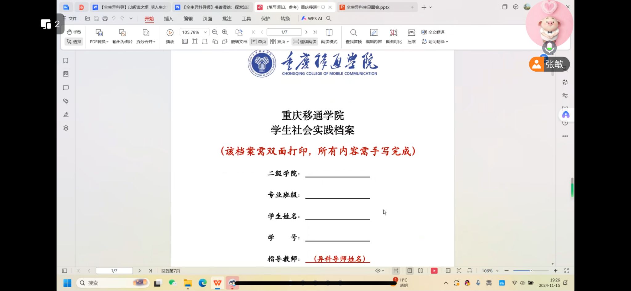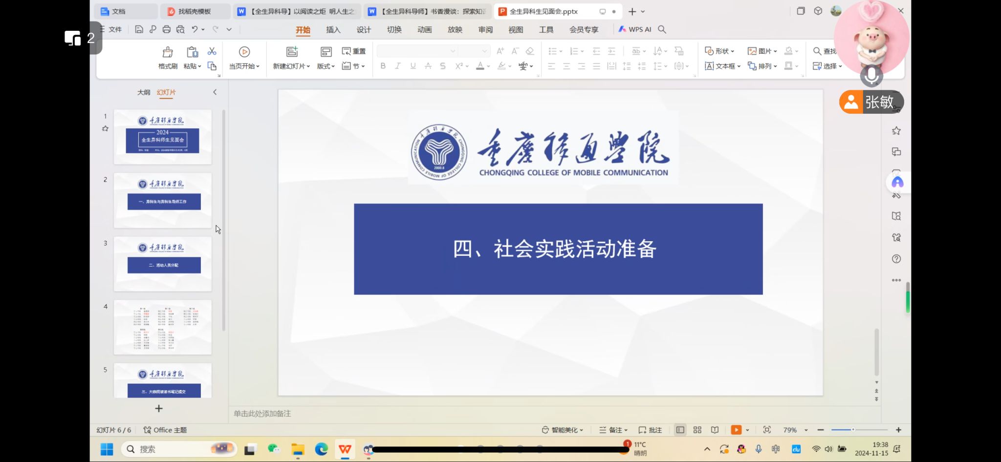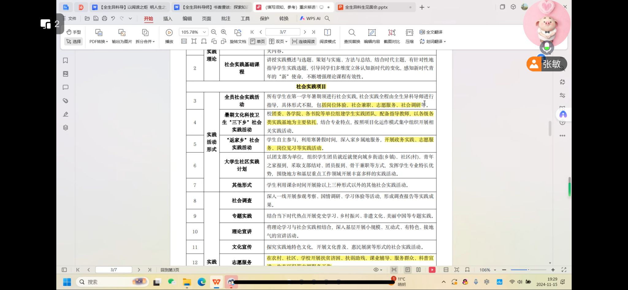 最后是社会实践活动的前期说明,社会实践活动是学生必须完成的一个学业环节,考虑到学生是2024级新生,刚入校不久,所以张老师在本次见面会中特意提到了学生必须完成的社会实践活动。强调了社会实践活动的重要性。张老师细心提醒同学们:“要积极参加实践活动,注意保留活动证明材料,比如现场照片等内容”,为实践活动的完成提供了一些建议和方向,让学生对社会实践活动有了提前的认识,方便后期每个学生能都能够顺利完成社会实践。