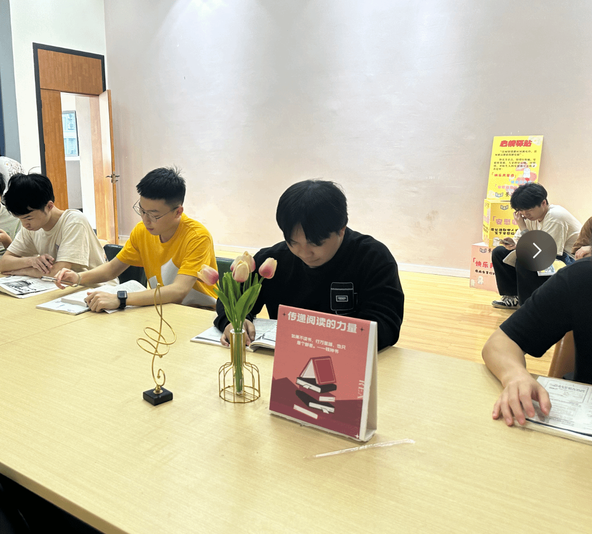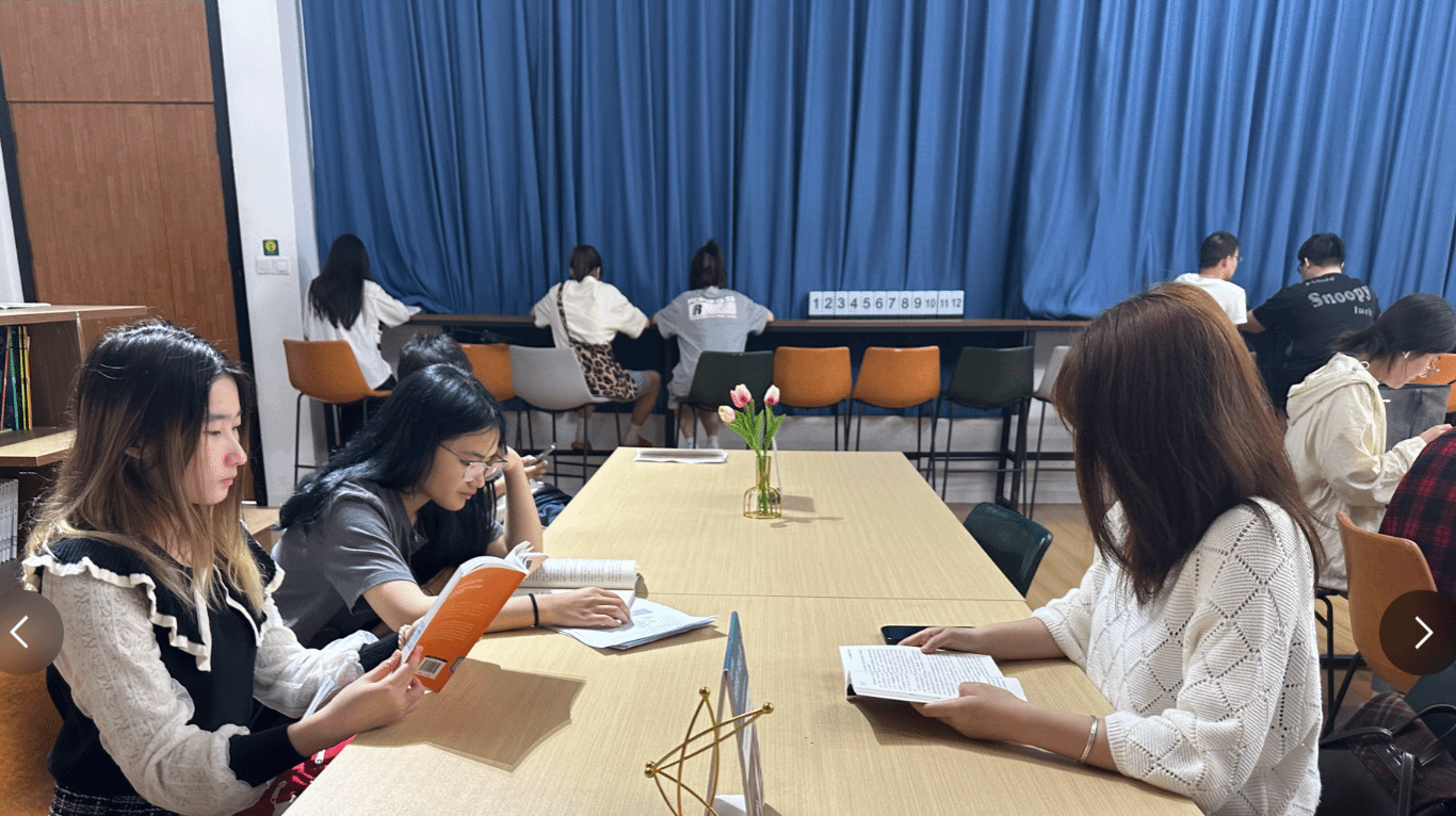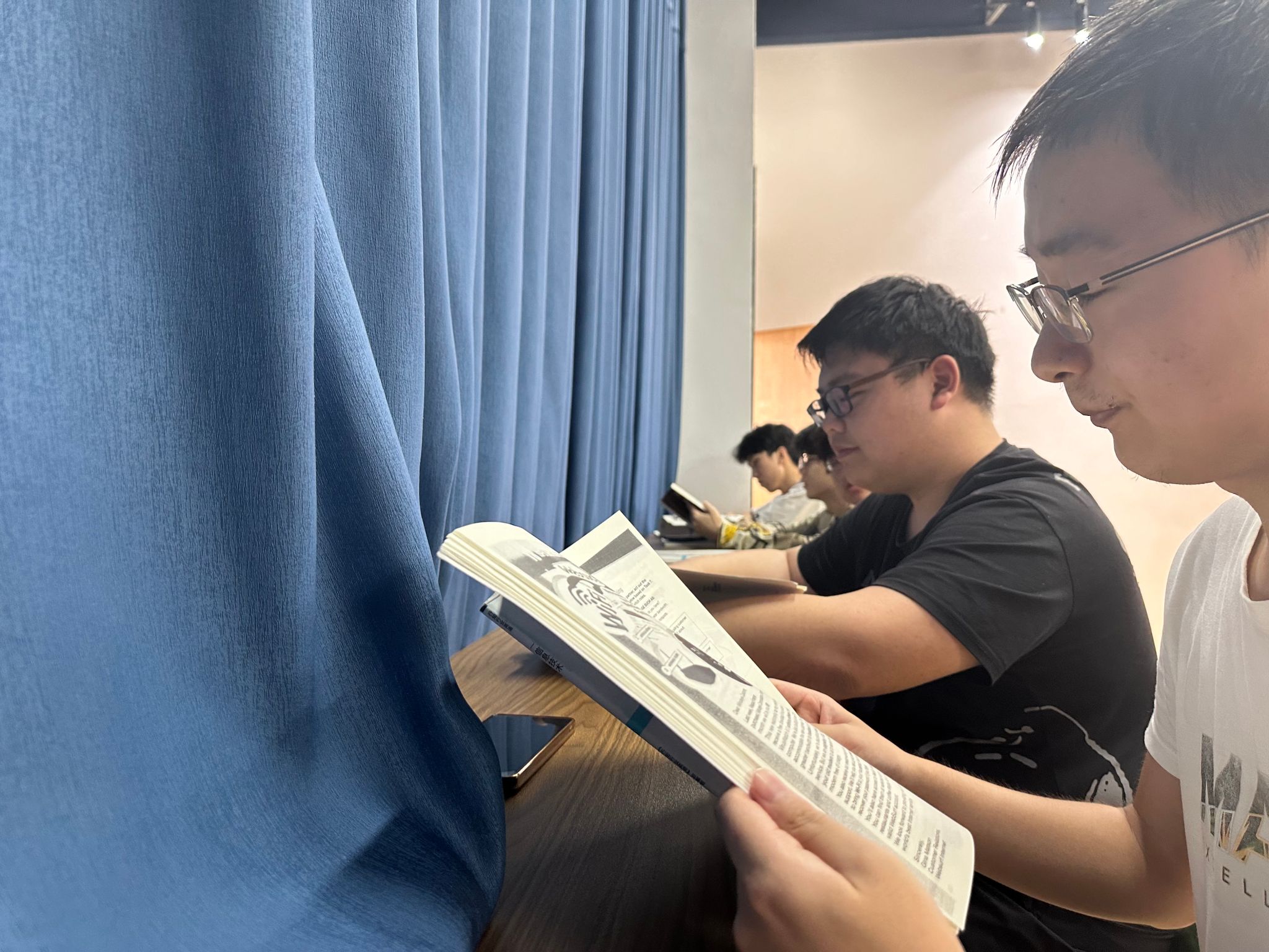 分享会开始,先让同学们一起进行了沉浸式的阅读,大咖阅读室丰富的书籍为同学们营造了浓厚的学习氛围。