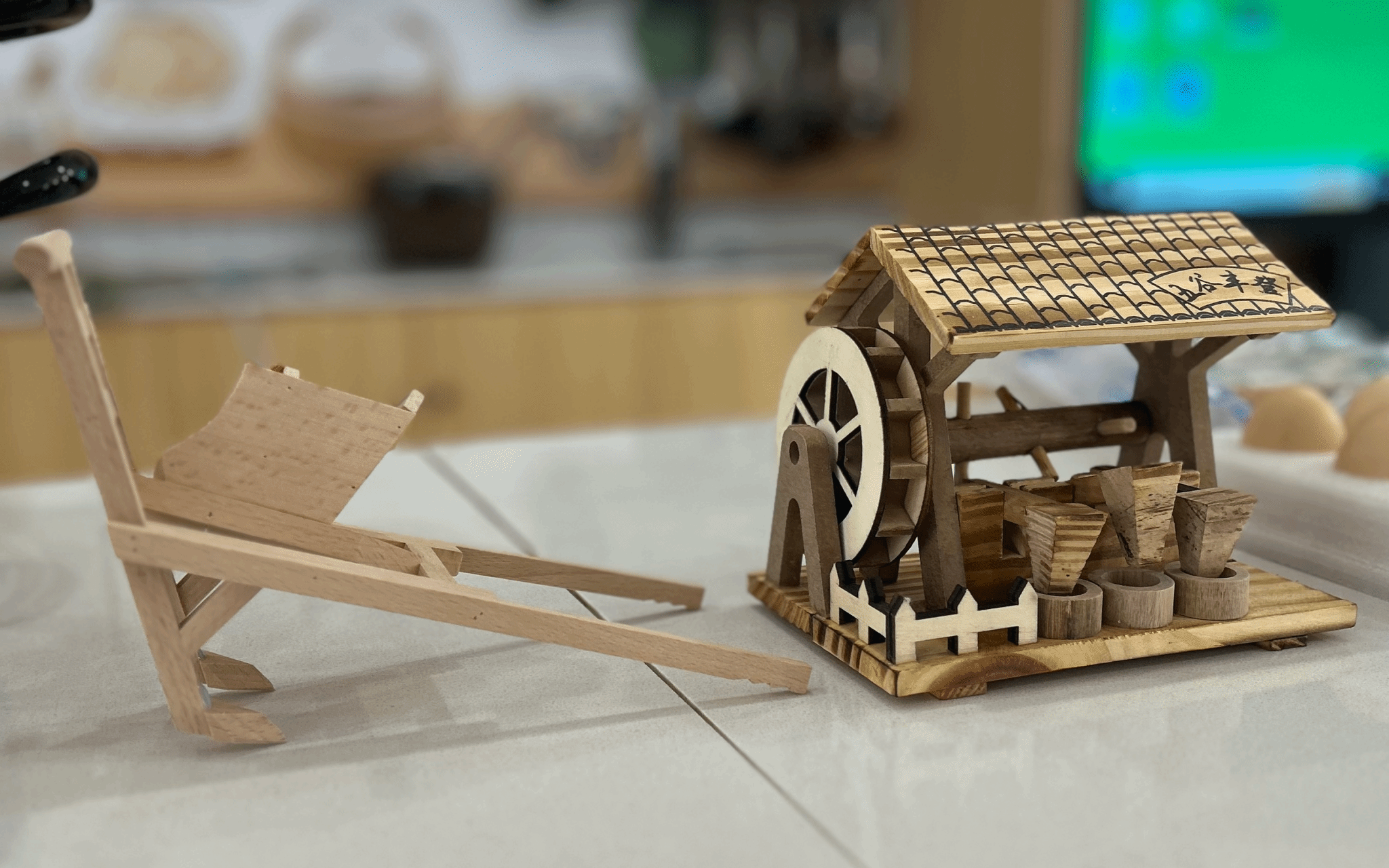 紧接着,主持人也向同学们讲解了小满前后耕作需要使用的不同类型的农作工具。播种机、耕地犁和水车等农作工具模型一一摆放在展台上,主持人以生动的语言向大家传达了农作工具的多元用途以及农民们辛勤劳作背后的智慧勤奋,展现了农业文明的社会与文化价值。