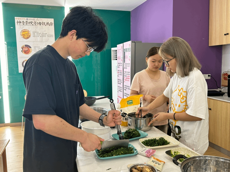 制作苦菜面团和苦菜饺子的环节更是引起了大家的兴趣。古人云——“春风吹,苦菜长,荒滩野地是粮仓。”在小满时节,这些苦菜正是生长茂盛的时候。同学们亲自动手揉制面团、包饺子。他们耐心而认真地将苦菜的苦味与面团、面皮的香甜相融合,以切身体验感受到了食苦菜在小满习俗的重要性。